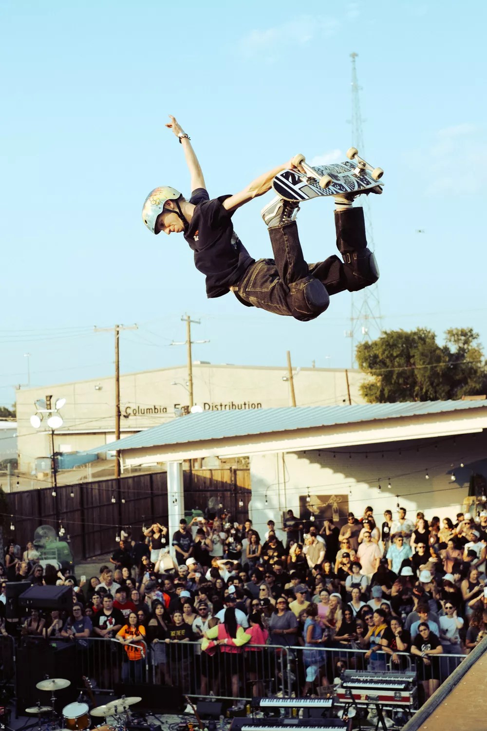 Once inside, the fans’ excitement was palpable, witnessing a historic moment: “The House Party Tour” making it to Dallas. The stage was set on the halfpipe as skaters did tricks in the background. Some lucky fans sat on the halfpipe, watching from a few feet above.