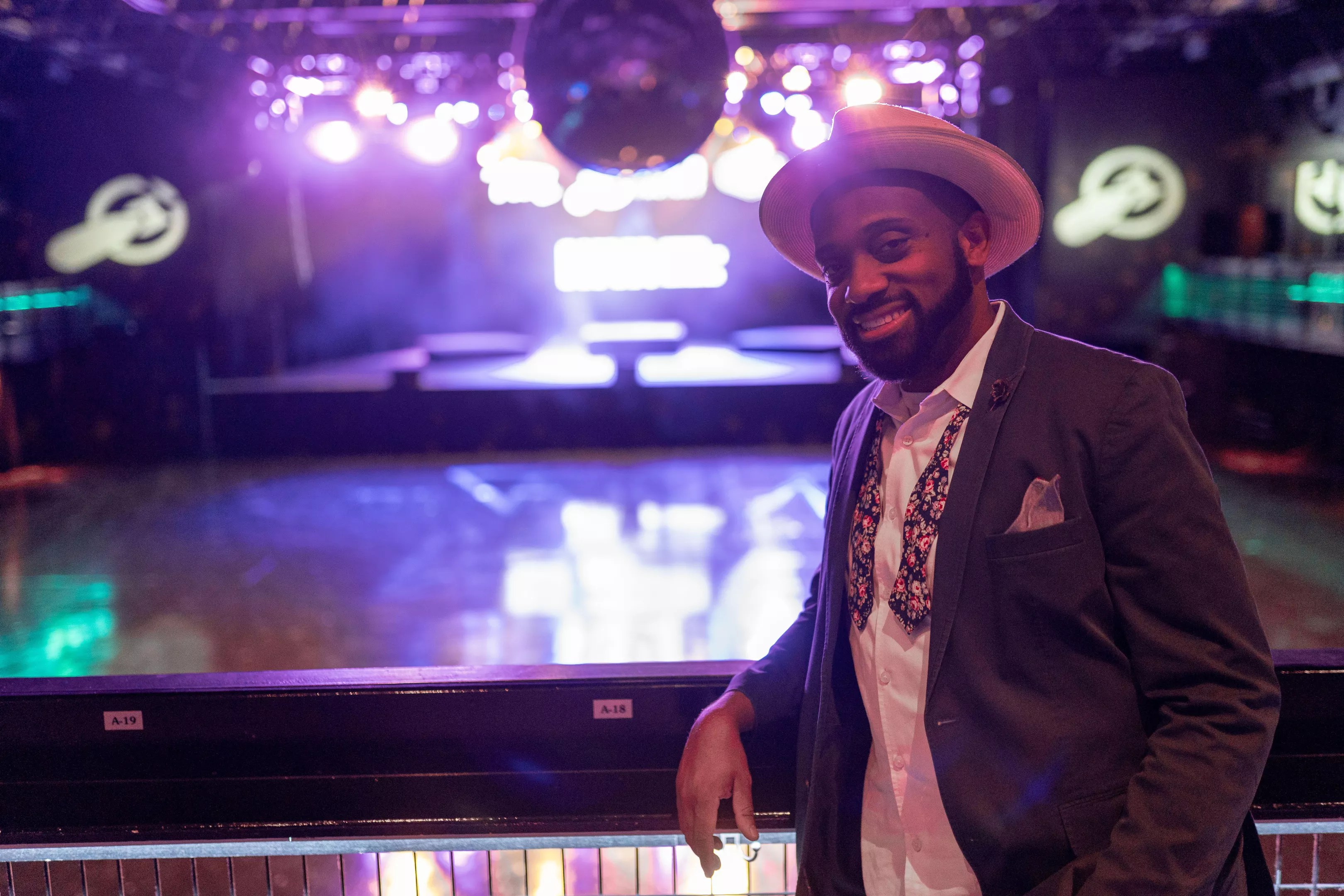 The Bomb Factory’s creative director Damany Daniel in front of the venue’s stage, which was been empty since March.