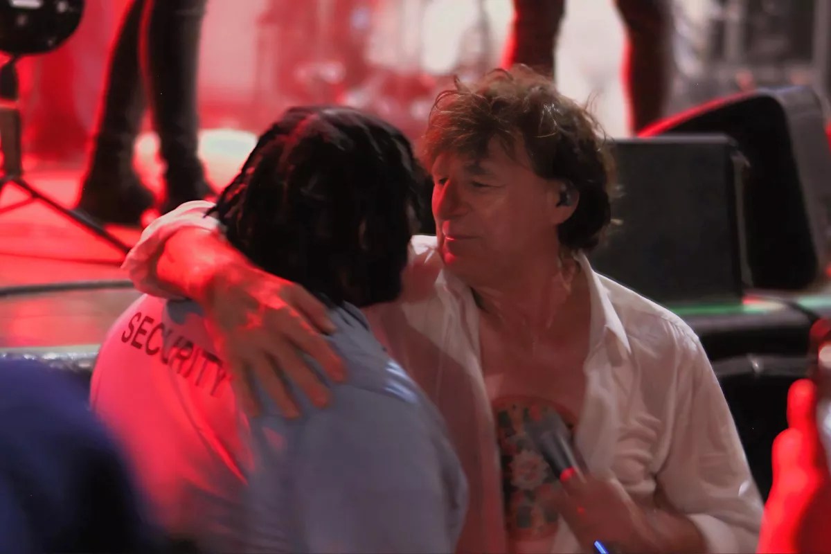 Mark Burgess shares a heartfelt moment with security, embodying the connection and warmth of the evening.