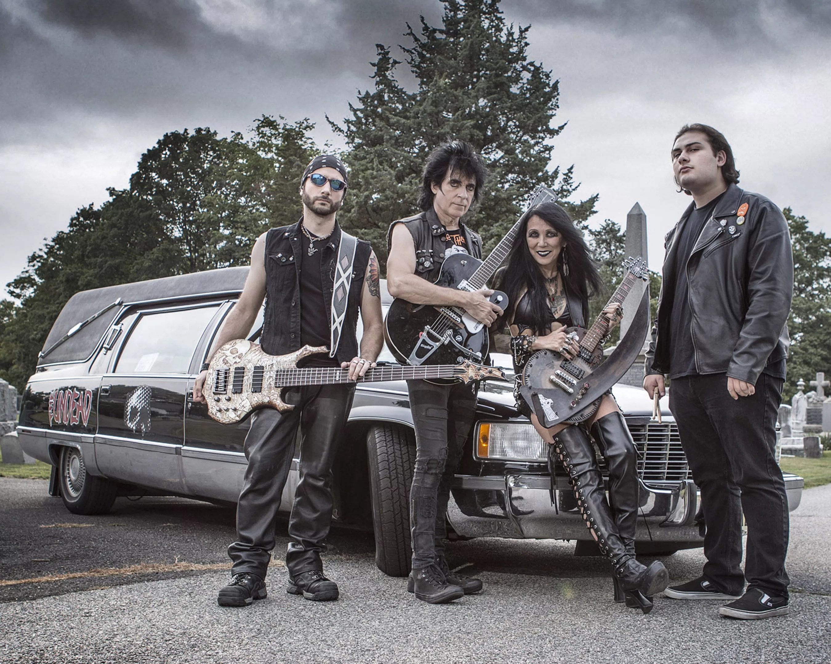 “We do a lot of horror conventions and things like that,” Steele says, “and we’d be in a room and you’d have all these guys from bands all in there. I would point out to somebody say, ‘Oh, man, that’s a so-and-so from this,’ and she would just go over and start talking to them. They tended to know something about me, and they’d be like, ‘Well, yeah, sure, we’ll do something on there.'”