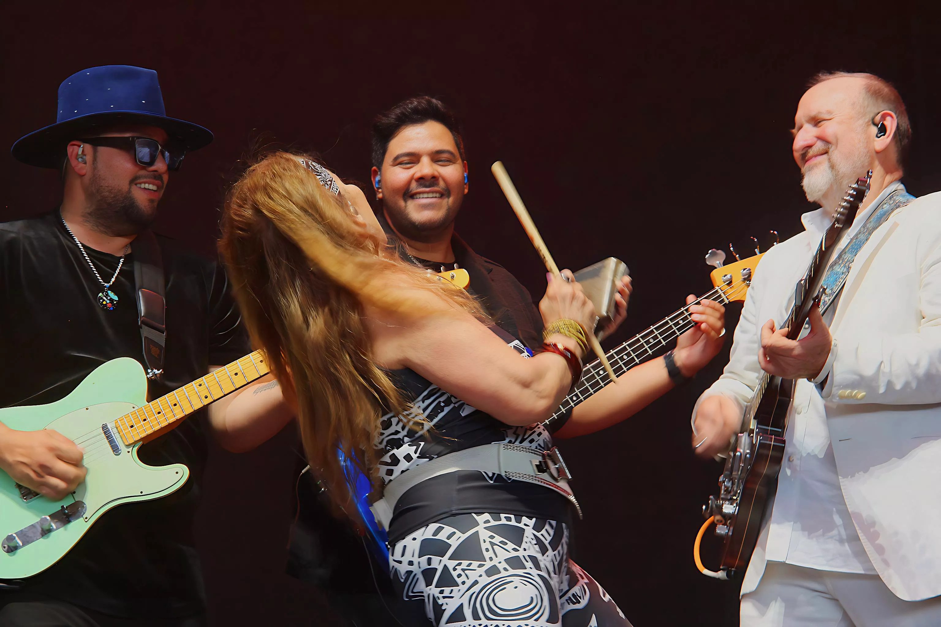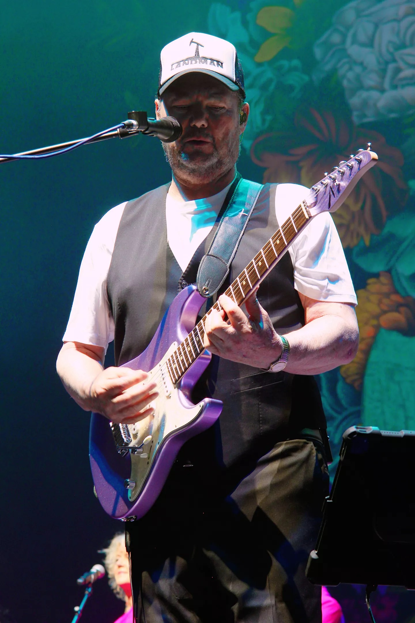 San Miguel, Men at Work’s lead guitarist, delivers electrifying riffs with effortless style.
