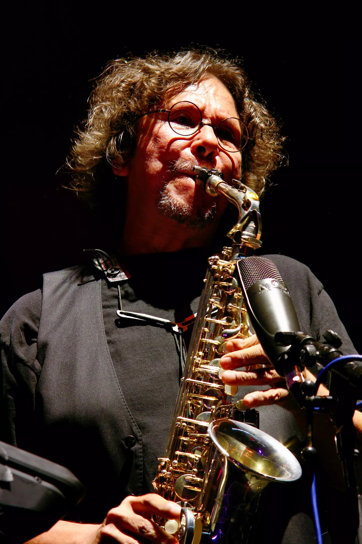 Rachel Mazer captivates the crowd with her saxophone skills and dynamic stage presence.
