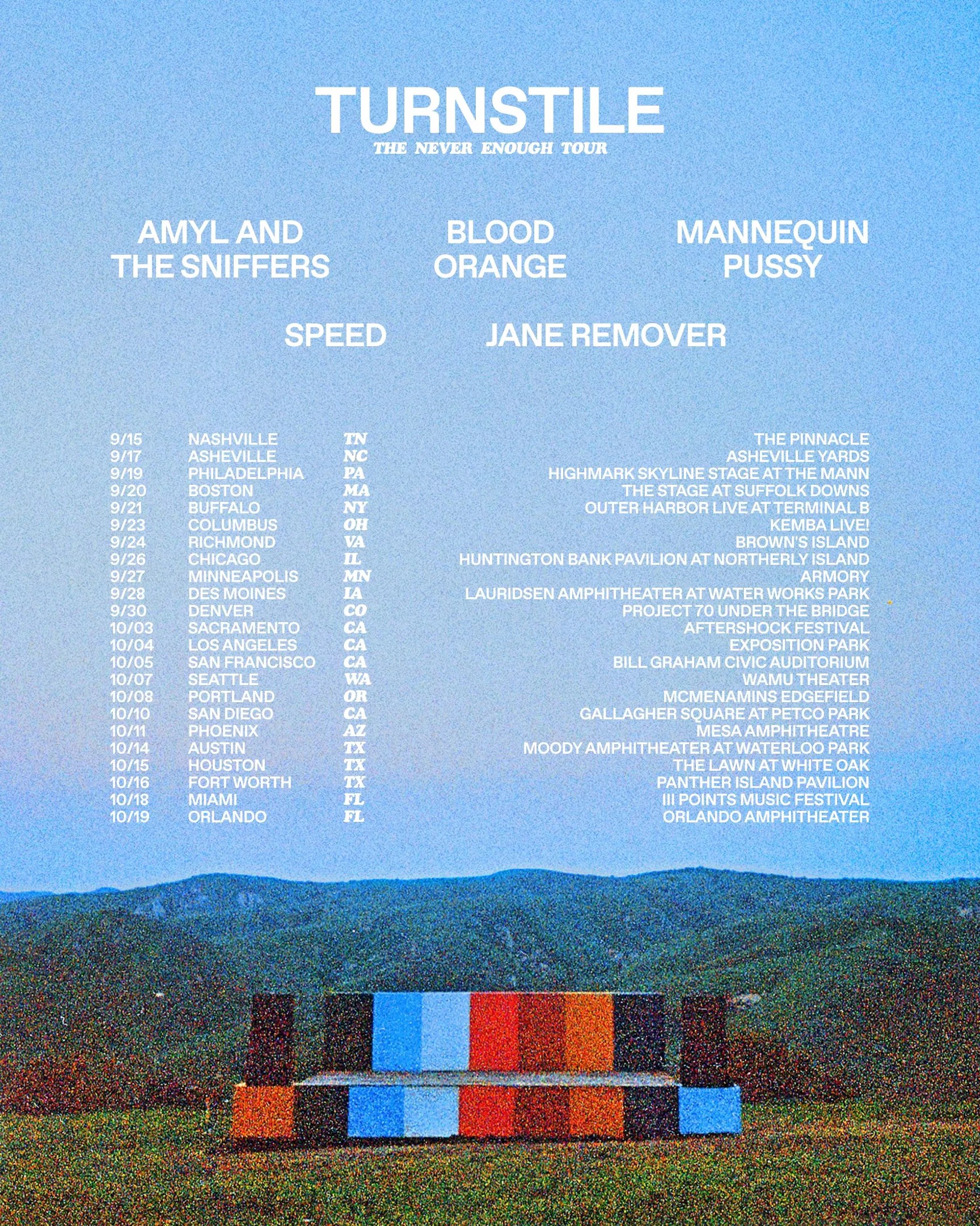 Turnstile announced the Never Enough Tour, with special guests Amyl and the Sniffers and Speed, plus punk stalwarts Mannequin Pussy, Blood Orange and Jane Remover. Can we take credit for manifesting this?