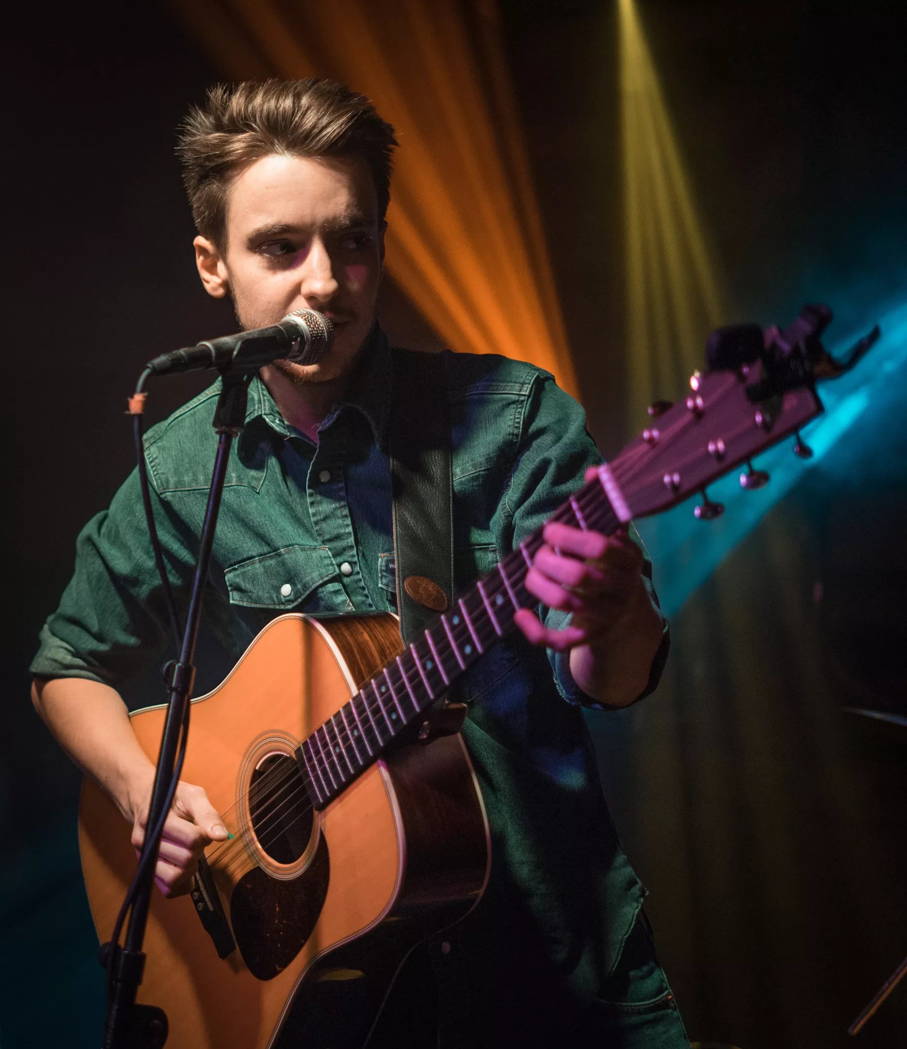 Perched on a chair in front of red velvet stage curtains at the Granada Theater, Joshua Ray Walker plucks a simple, mellow tune: “We’ve been talkin’ for a while, and I think I like your smile …” The crowd sings along gently. Wryly, he laments at the end of the chorus, “I’m pretty sure you think my name is Paul …” “Paul!” the crowd shouts back. Walker grins and keeps strumming the Martin D-15M guitar strapped across his chest.