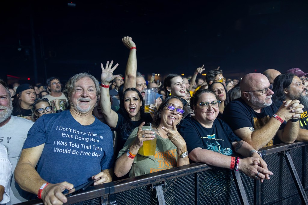 The band didn’t particularly have much to say to the adoring, capacity audience, which shouted back lyrics with gusto, phones held aloft to capture every moment. The boilerplate “How are you doing?” and “Thanks for coming” was pretty much the extent of it, save a few asides from Teasdale: “If you’d be so kind as to sing along, the more the merrier, you know?”