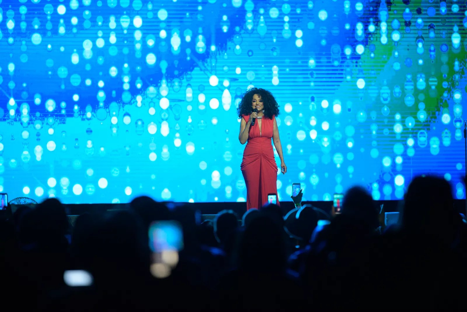 Diana Ross performing at The Bomb Factory in 2019 as part of a live concert for the AIDS Healthcare Foundation.
