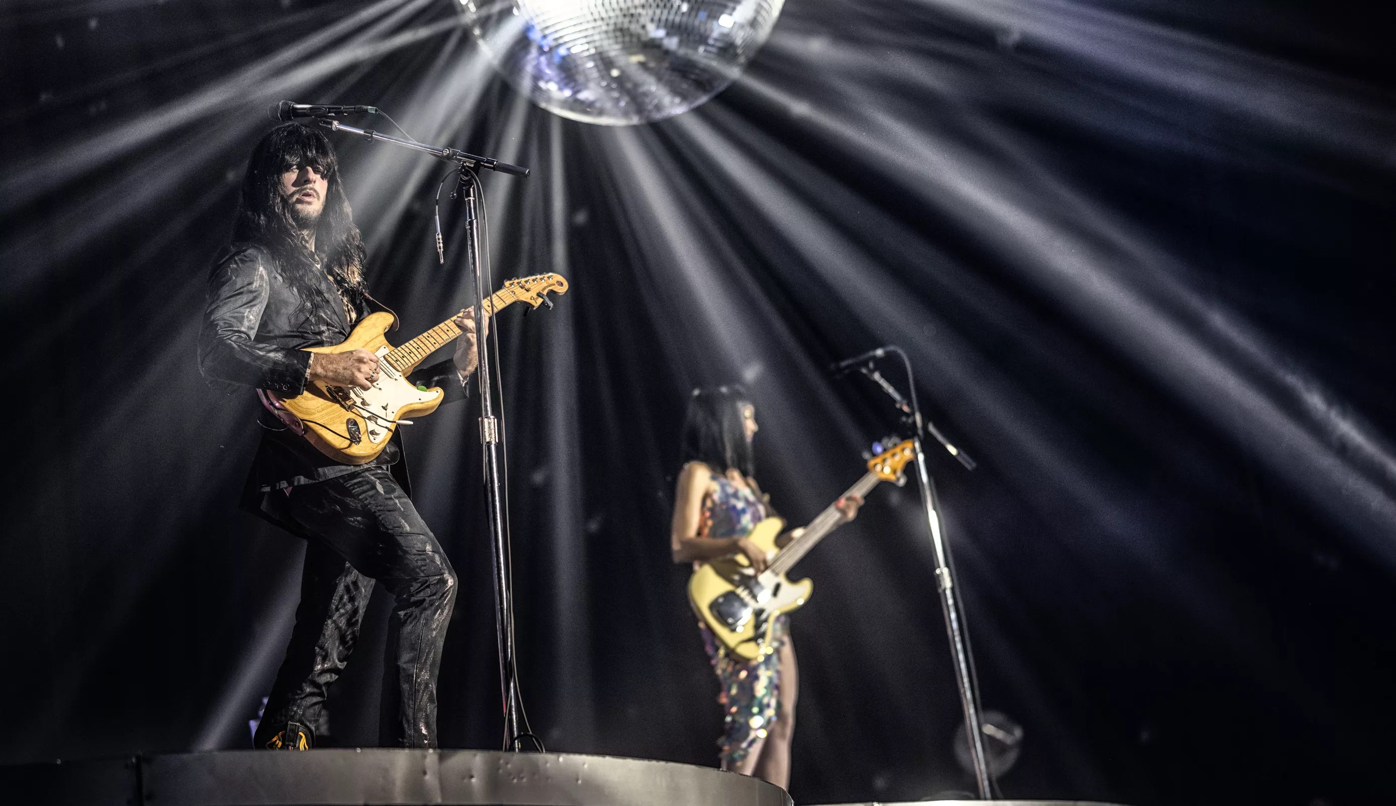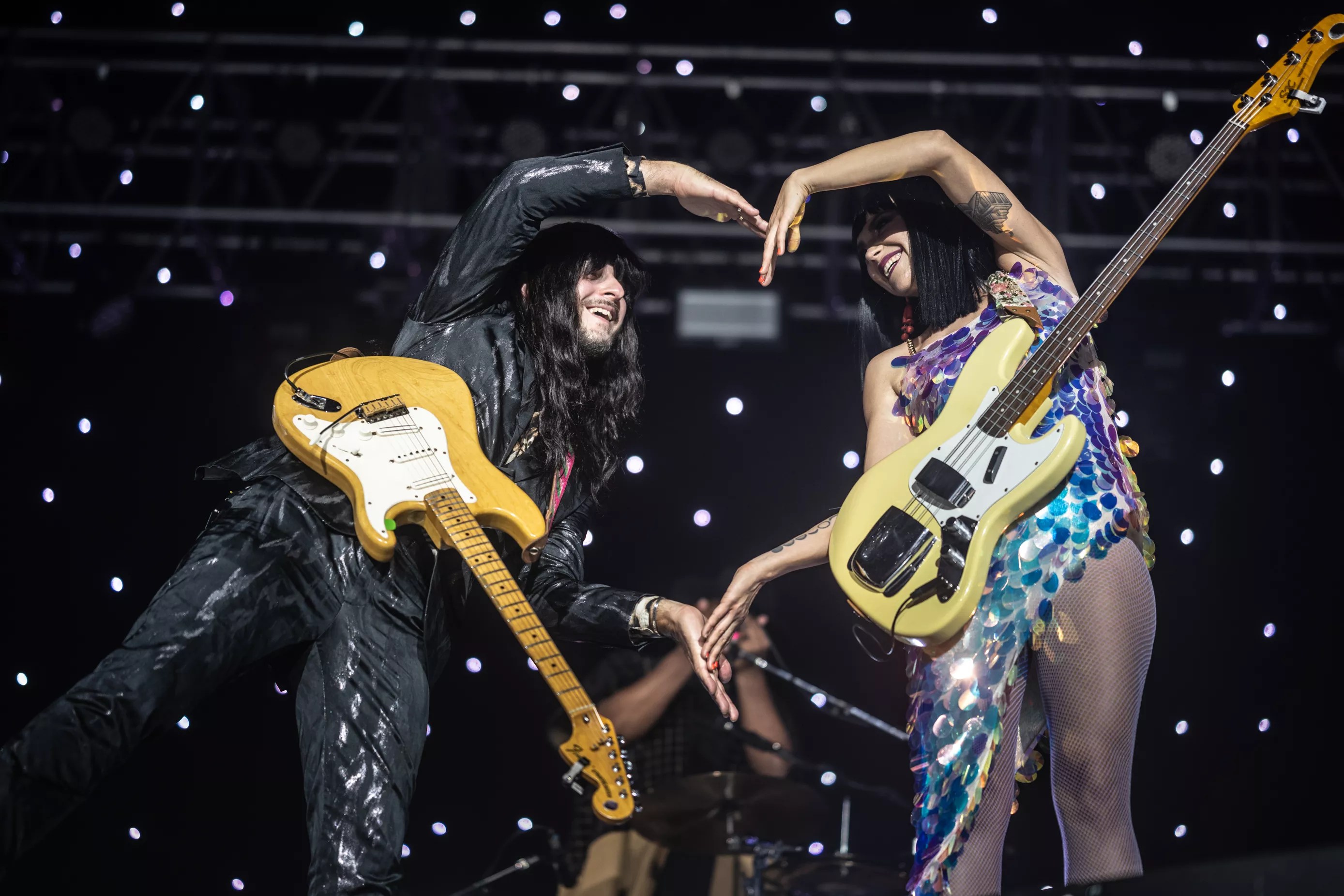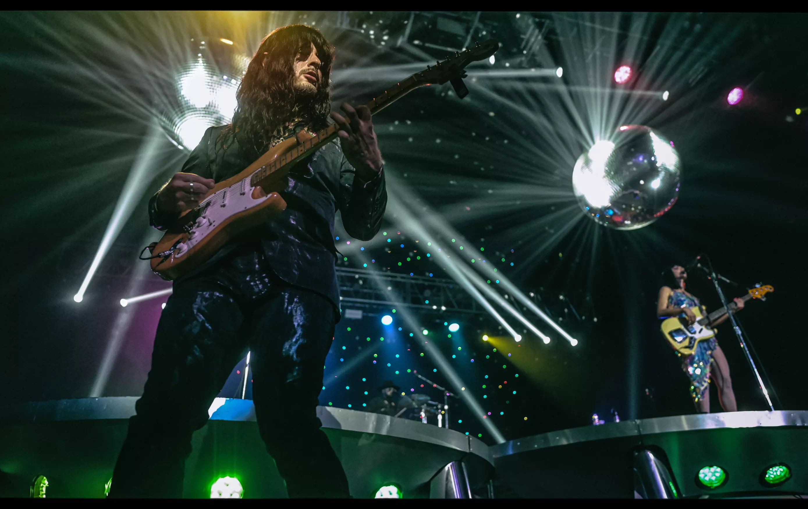 Situated atop three enormous platforms, which resembled the lower halves of mid-century modern-styled spacecraft, the musicians were surrounded by light, whether blaring spots ricocheting off mammoth disco balls, or pin-prick glittering, arrayed across a curtain draping the back of the stage. The cumulative effect often felt like floating – Khruangbin’s mastery of hypnotic grooves, the sound and sensation of three distinct instruments locked together yet dancing around one another is intoxicating.
