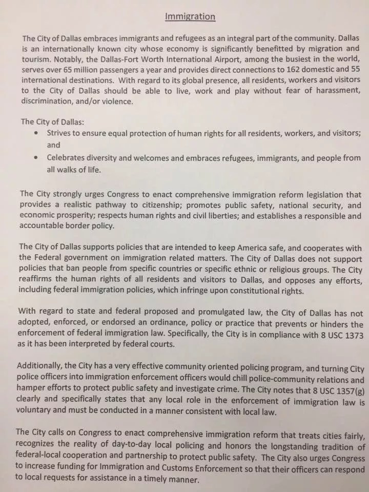 The resolution that Lee Kleinman hopes will keep Dallas from being labeled as a sanctuary city.