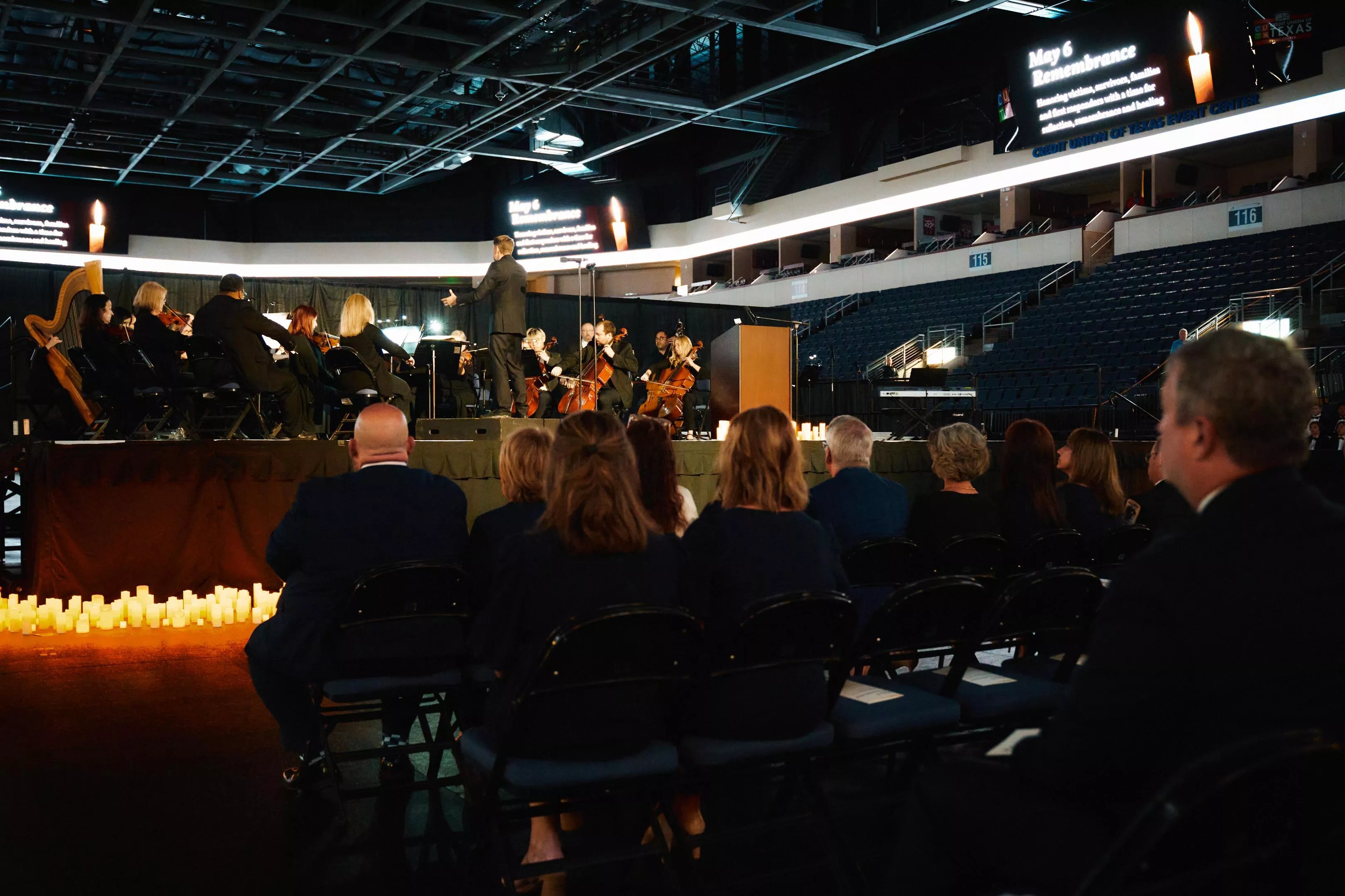 According to Classic FM, Elgar’s piece is the most popular choice of classical music for funerals. It was also performed at Prince Philip, Duke of Edinburgh’s 2021 funeral. Performed for a few hundred attendees on Monday night inside the Credit Union of Texas Event Center, it was beautifully serene, even hopeful.