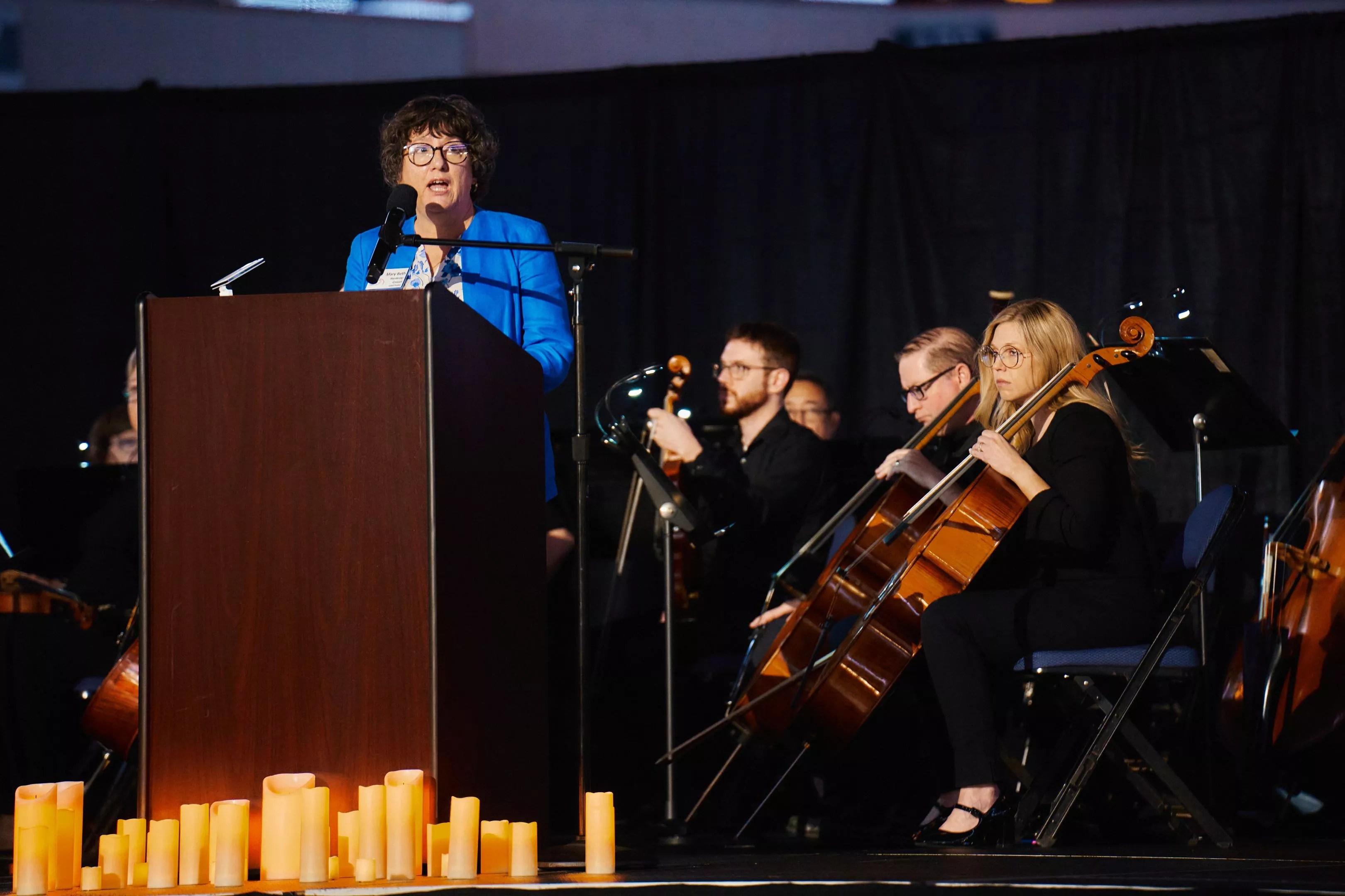 Mary Beth Hardesty-Crouch, lead pastor of the First United Methodist Church in Allen, spoke at the May 6 remembrance event in Allen.