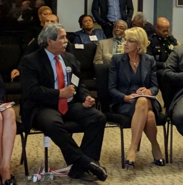 Devos listened, or at least looked like she was listening, to Dallas ISD Superintendent Michael Hinojosa.