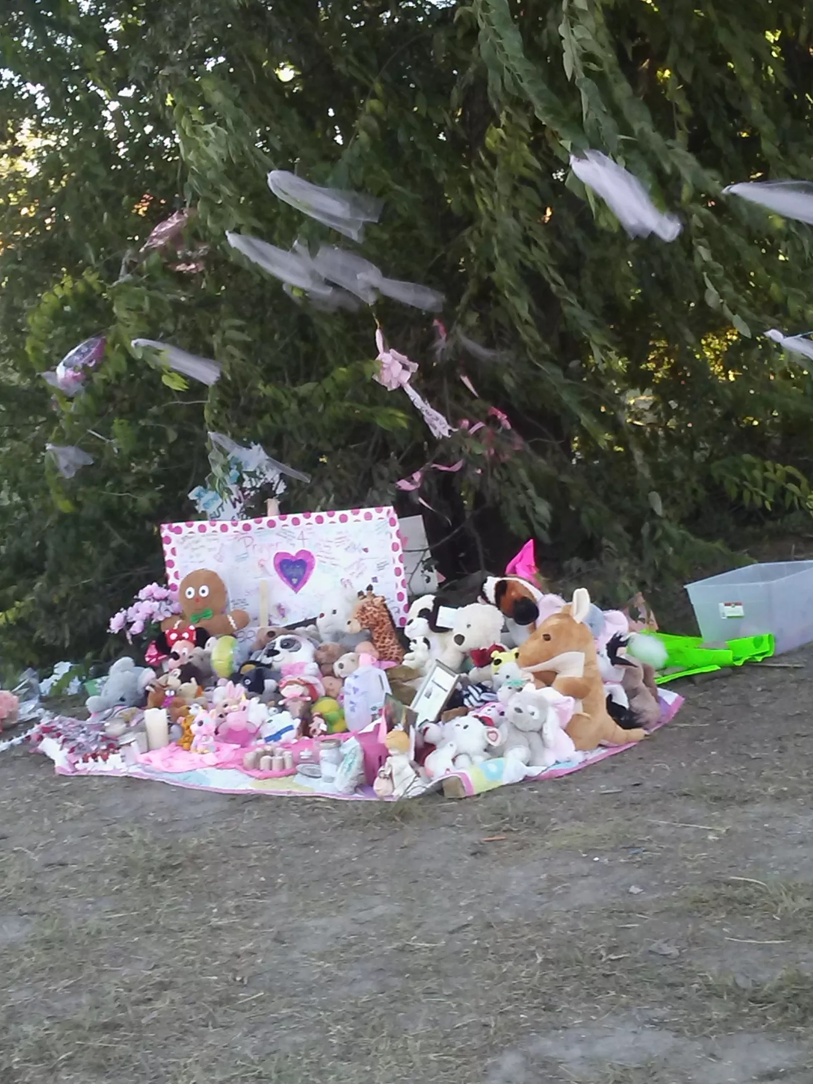 Well-wishers hoping for the safe return of Sherin Mathews placed stuff toys at the site of her disappearance.