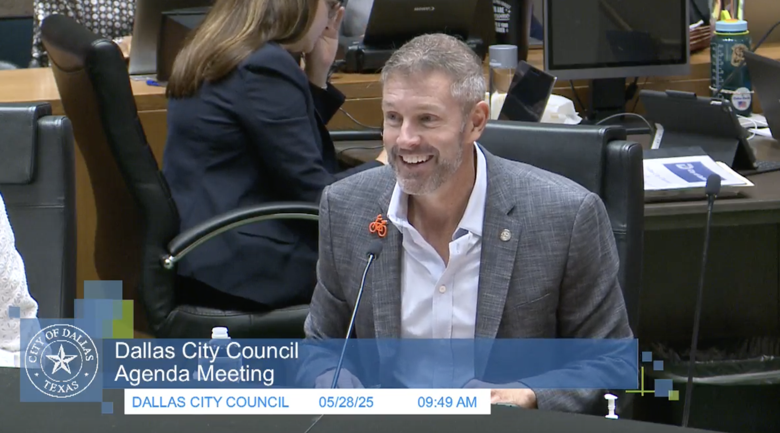 In case you wanted to see council member Chad West’s dapper jacket pin.