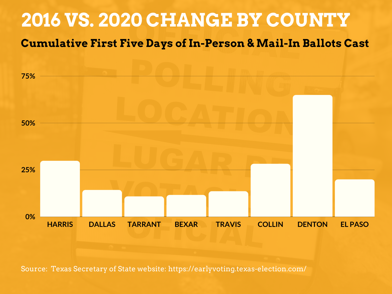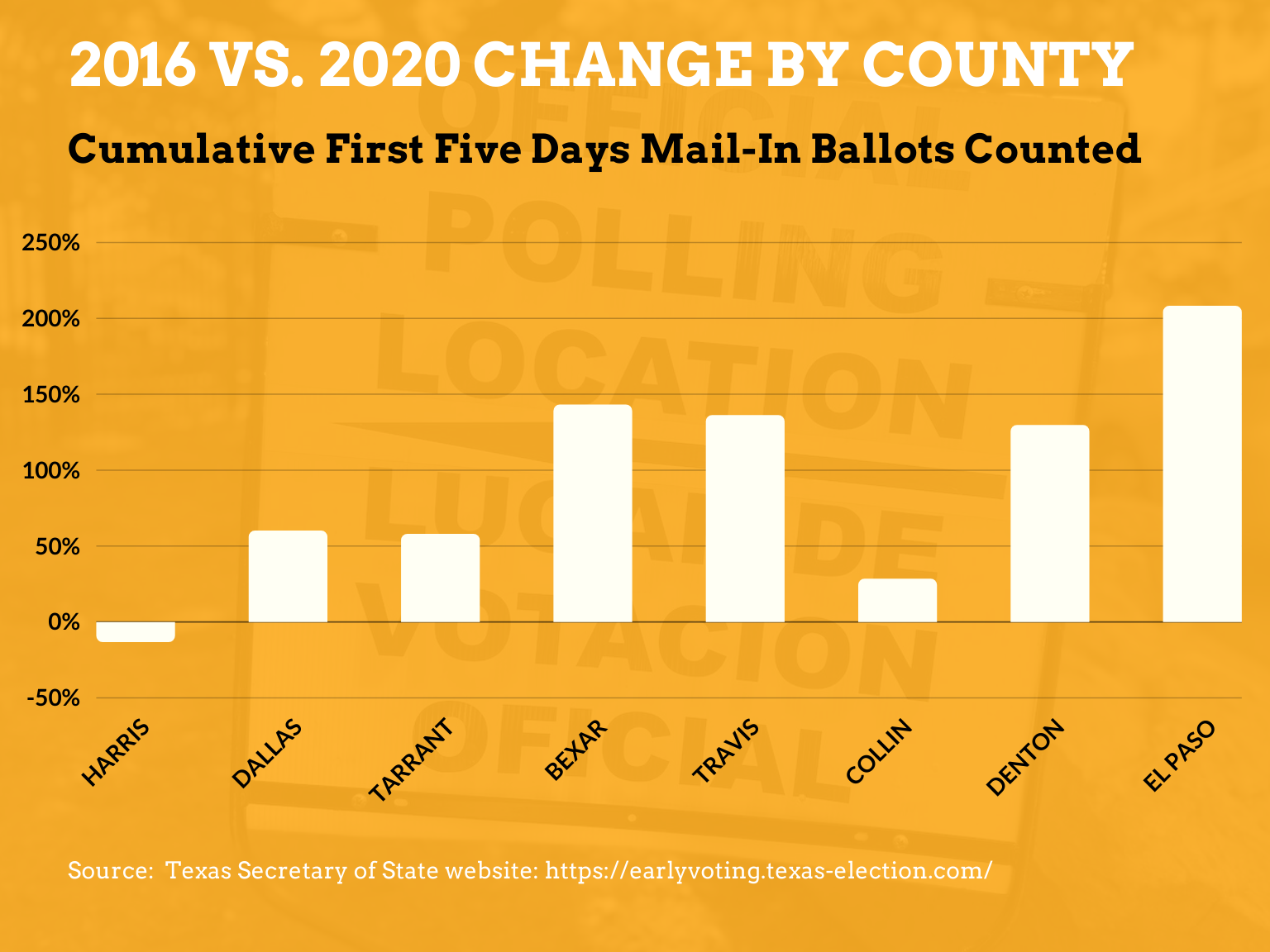 Based on data pulled from the Secretary of States website, eight Texas counties are pulling in big numbers compared to 2016.