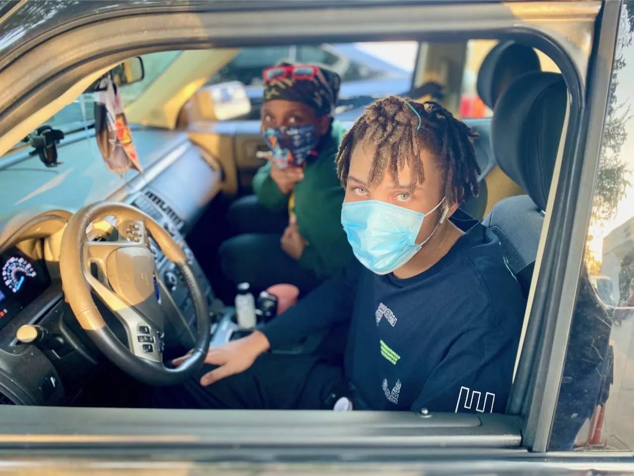 Cynthia Richardson rides along with her son, Zyoun Jackson, who is 18 and registering for the first time.