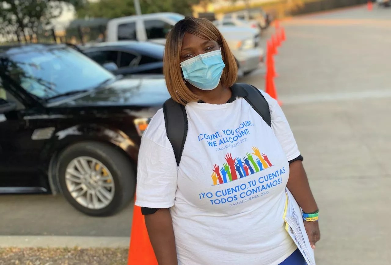 A few of the Mavs Maniacs bounced around to music playing from a Univision tent. More than a dozen volunteer deputy registrars (VDRs) were spread throughout the parking lot with clipboards and pens in hand, all wearing masks and comfortable shoes. These civic-minded citizens, after taking a fairly simple course through the county, are entrusted by the state to collect voter registrations cards.