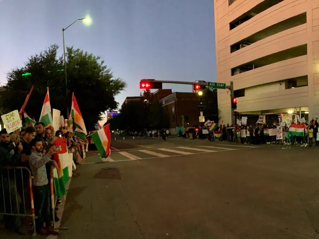 It was the biggest Kurdish protest Dallas has ever seen, said Omar Barzani, a Kurdish American restaurateur. He arrived to the United States in 1977 and has lived in the Dallas area for nearly four decades. “There’s never been this much support for the Kurds,” he said. Barzani repeated the old saying about the Kurds and the mountains, and then inverted it. “Now, we have more friends than mountains,” he said, listing them off: Congress, the American people.