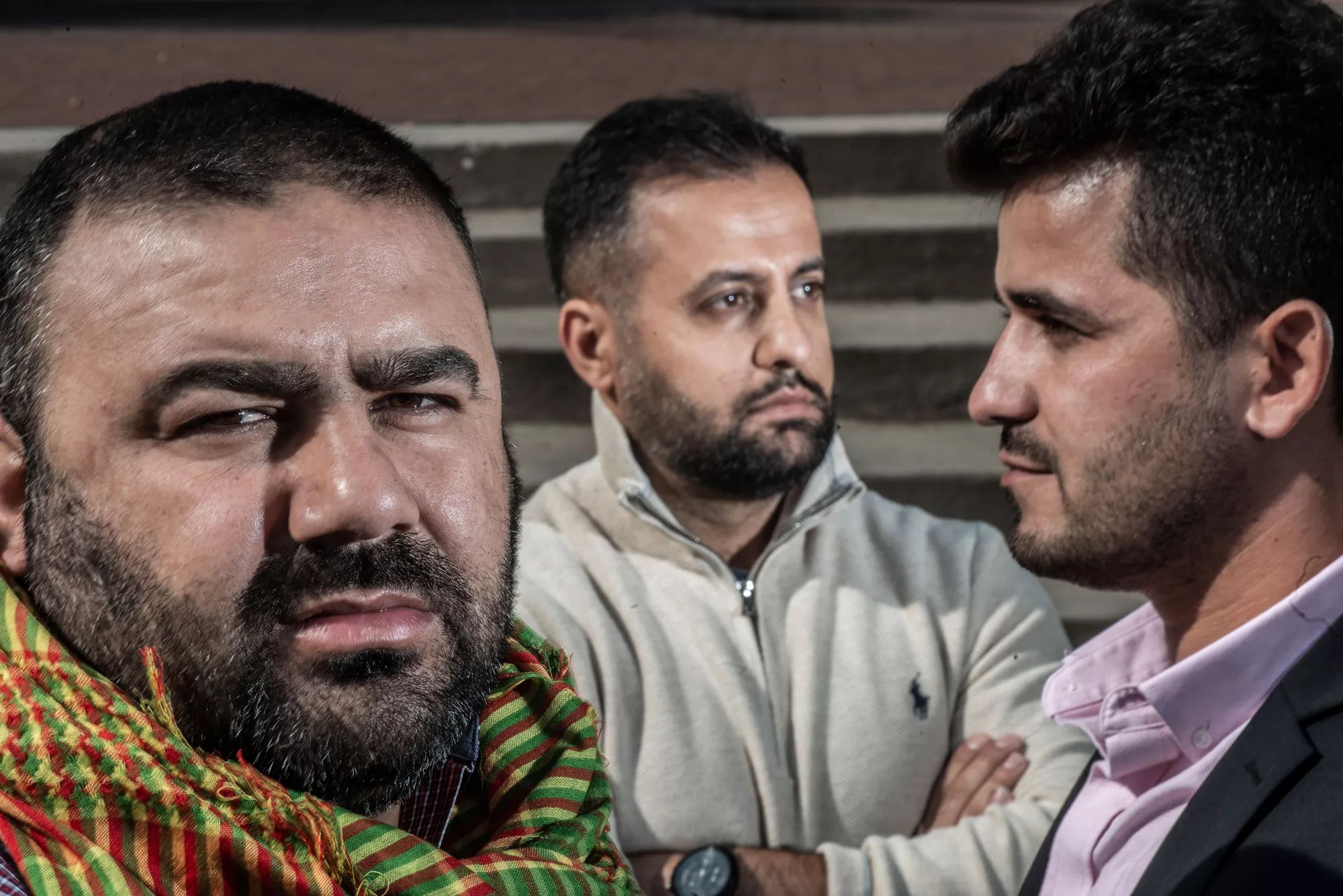 From left: Ahmed Qader Ahmed, Nezar Ahmed and Saman Gardy meet over coffee to strategize their demonstrations.
