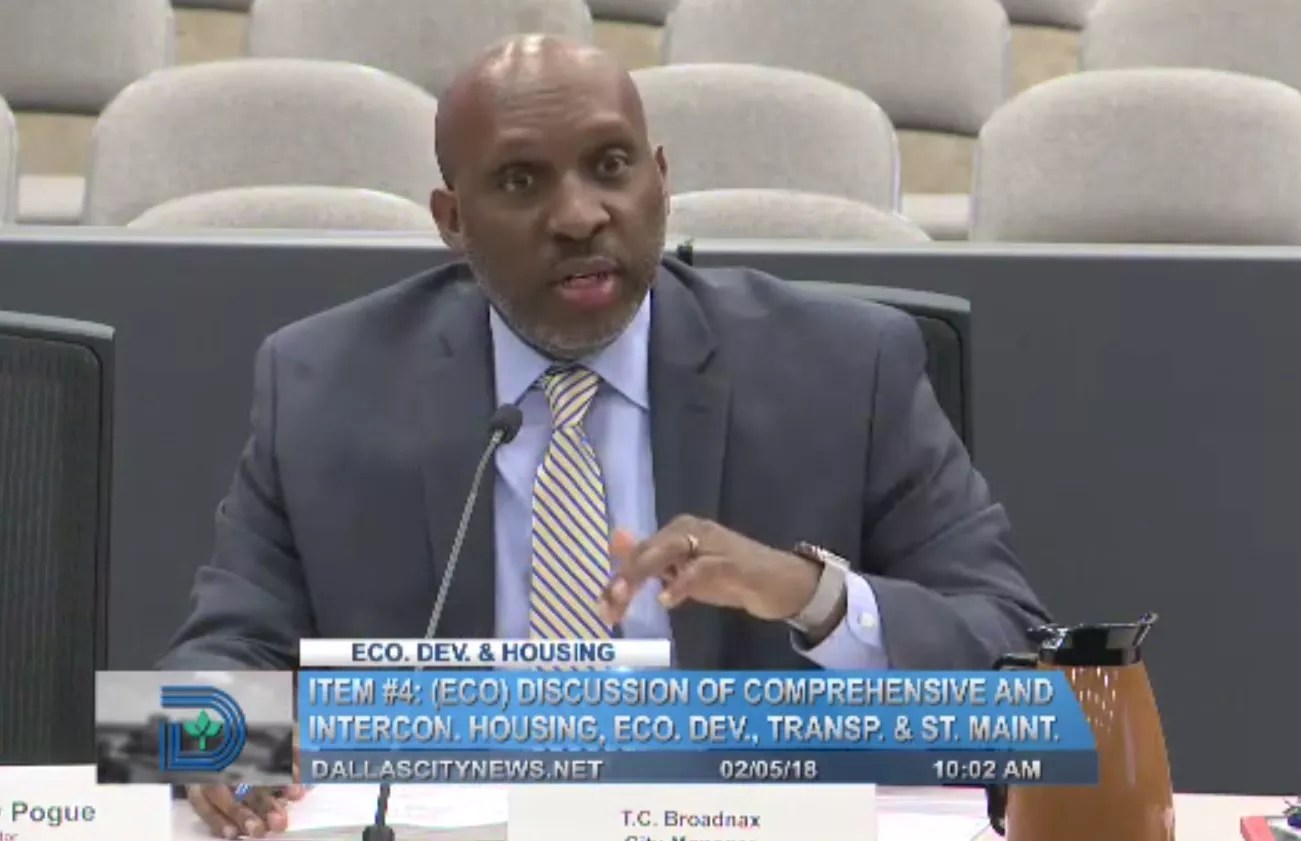 Last week at a meeting of the council’s Patronage and Payola Committee (officially called Economic Development), Callahan was only one of several committee members who gave City Manager T.C. Broadnax a big ration of grief for wanting to come up with a rational citywide economic development policy. And I have to admit: Even I felt uncomfortable watching Broadnax argue for reason and expertise.
