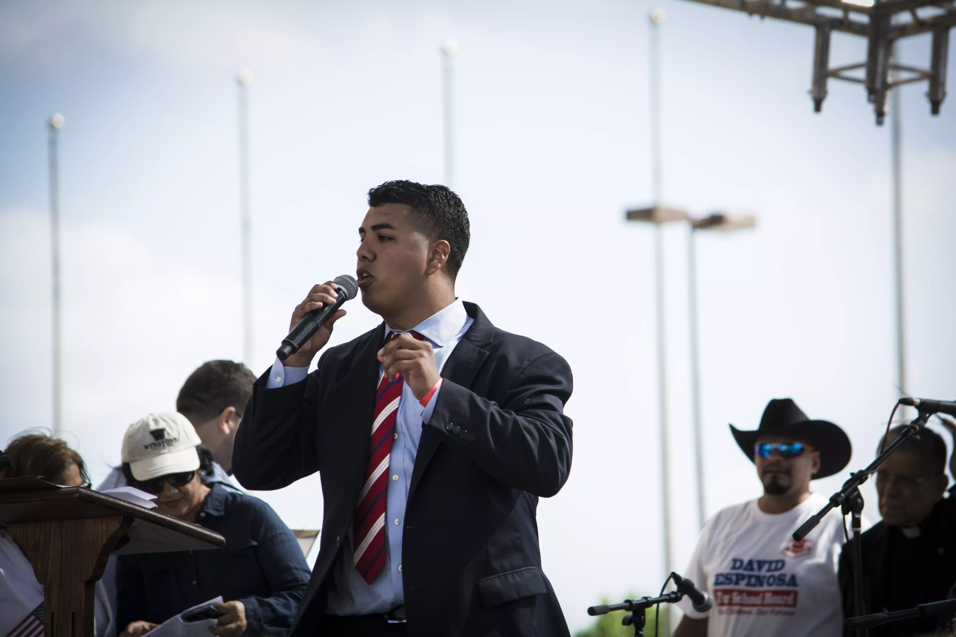 Marching at the front of the pack with a bullhorn Sunday, Gonzalez wore a red, white and blue tie. Garcia, marching next to Gonzalez, sported garish American flag neck-wear. Both leaders were dressed in accordance with the guidelines given to marchers: wear red, white and blue and don’t wave any flag that isn’t the Stars and Stripes.