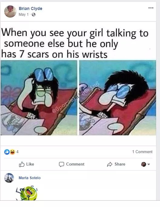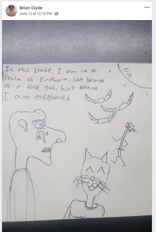 Other posts reflect Clyde’s mental health struggles. Meme from Brian Clyde’s Facebook Brian Clyde via Facebook A cartoon from Brian Clyde’s Facebook Brian Clyde via Facebook