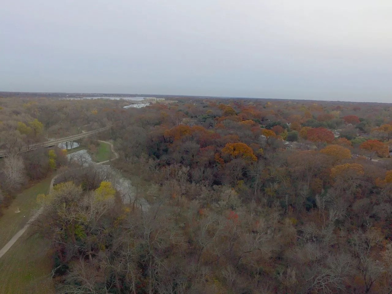 “Dead Man’s Creek” (left) runs under a DART track and is bisected by the White Rock Lake Trail.