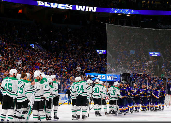 As the crow flies, Dallas and St. Louis are separated by 547 miles. In this year’s Stanley Cup playoffs, the distance between the Stars and the Blues was much closer. Through the first six games of their West semifinal series, each team had won three games. Each had scored sixteen goals. But measuring up so evenly with the Blues is cold comfort to the Stars, who ended their season on the wrong side of a 2-1 score in double overtime of Game 7 at the Enterprise Center on Tuesday night.