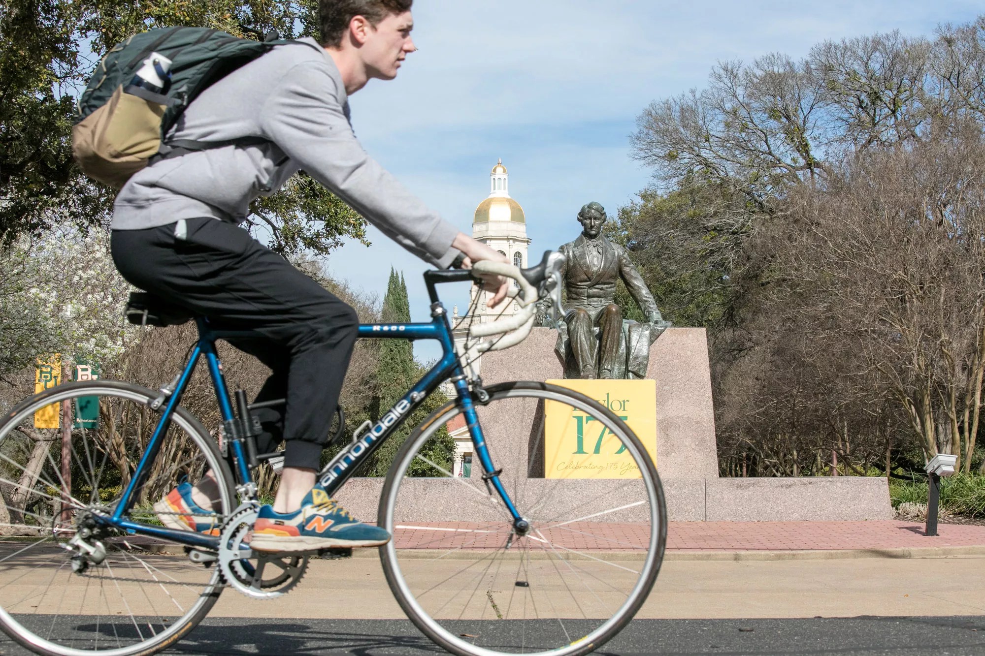 A student rides on Baylor’s campus in Waco, where the university is working on a more open culture to welcome marginalized groups, including LGBTQ students.