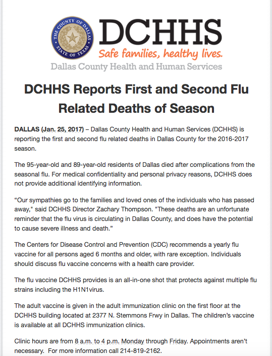 — Jim Schutze, from “Park Board Thinks Asking State Fair Tough Questions Is ‘Embarrassing’” Texas Mourns Death of a Moonwalker The Texas flag is at half-staff today, Wednesday, January 25, 2017: Former U.S. Navy Captain Gene Cernan passed away on January 16, 2017. As an astronaut, Captain Cernan played an important role in the exploration of space and in the development of the aerospace industry in Texas. He was the last man to set foot on the moon and his final resting place will be in the Texas State Cemetery. As such, it seems fitting that flags in Texas should be flown at half-staff on the day of his interment. County Flu Buries Two DHS Grim Numbers Prompt State Grants for STEM Only 2 percent of Texas high school graduates completed a computer science class in 2015, even though 60 percent of today’s science, technology, engineering and math (STEM) jobs are in computing, according to the Texas Education Agency. One of the issues is that few Texas teachers are certified to teach computer science. For example, in 2014-15, pre-service teacher preparation programs produced only 14 computer science teachers in the entire state.