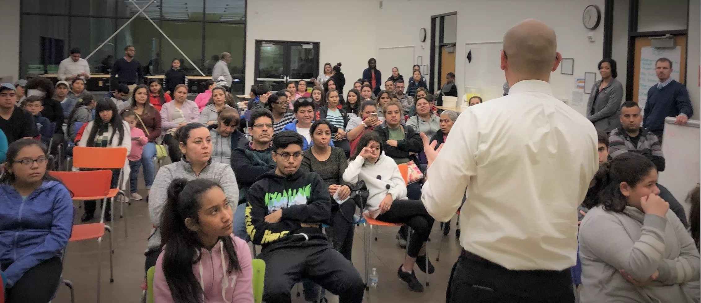 Throughout the meeting, the parents were quiet but intensely focused on what was being said. Some listened to a Spanish translation on Bluetooth earphones. After Elizalde spoke, a few parents asked pointed technical questions about transfer requirements and paperwork.