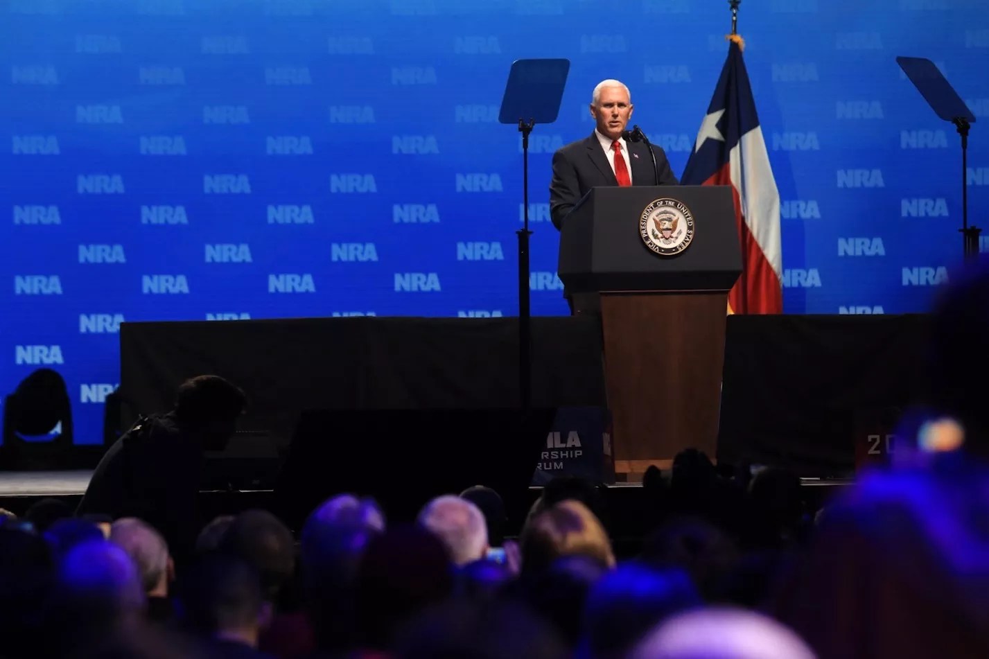 Finally, almost two hours after the event’s promised start time, Vice President Mike Pence appeared before about 7,000 National Rifle Association supporters.