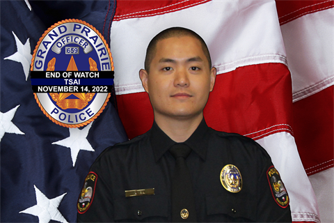 On Thursday afternoon, Grand Prairie police announced that an arrest had been made in connection with the Monday night chase that resulted in the death of officer Brandon Tsai. The 32-year-old Tsai was in pursuit of a suspect driving a vehicle with a fraudulent license tag Monday night when he lost control of his patrol vehicle and crashed into a light pole. He later died from his injuries.