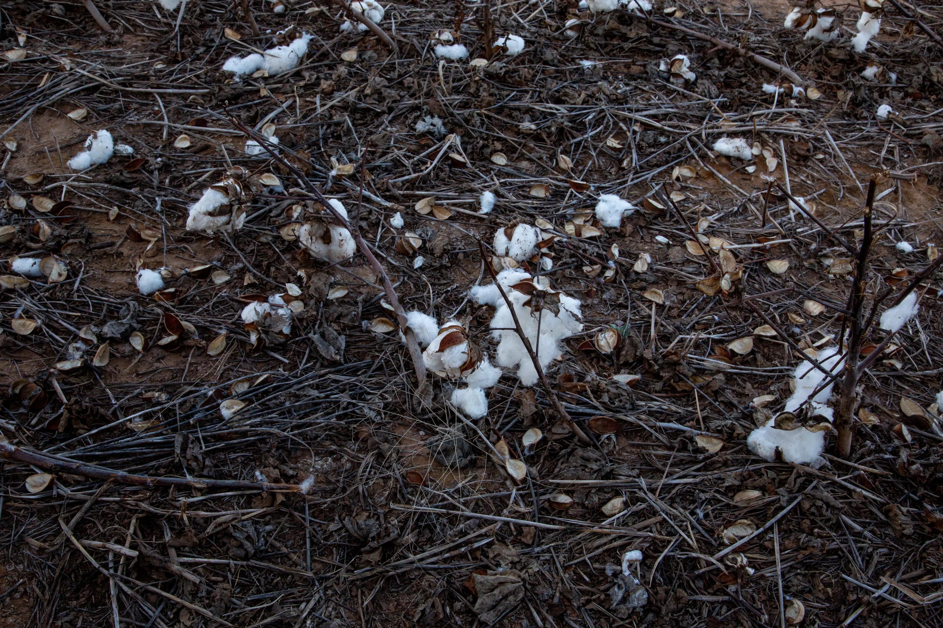 Healthy cotton yields three or four bales per acre, and McAlister says he has to make a bale and a half to two bales per acre for a crop to be worth harvesting. This year, he guesses his fields would have produced about a quarter bale per acre.