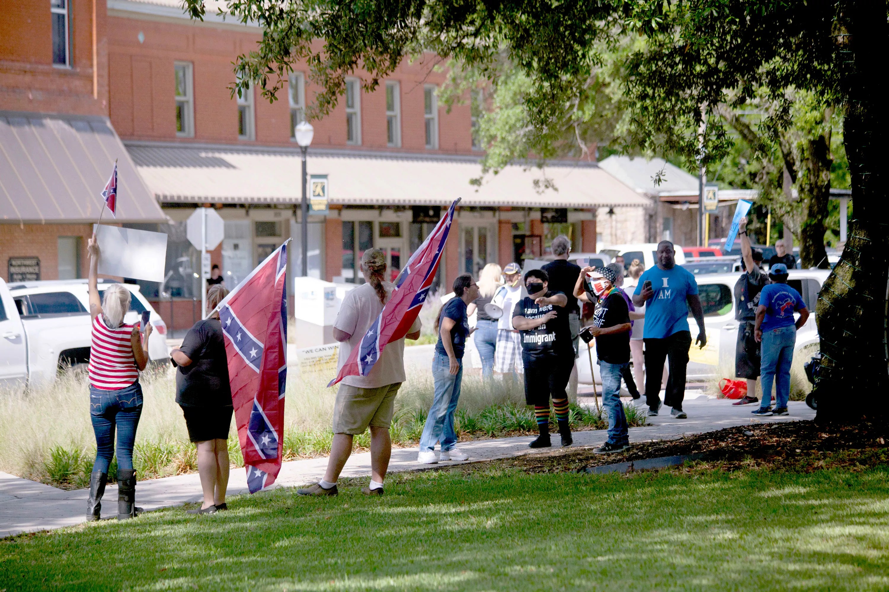 In late August, the second rally included around a dozen people participating in educational presentations and another march to the statue. That demonstration drew a few counter-protesters, men draped in Confederate flags, but it ended without incident.