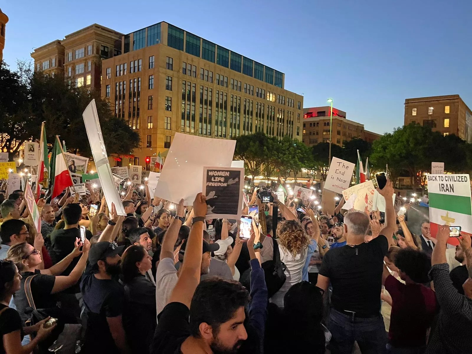 “The government there does not care about anybody,” she says. “Our goal with these protests here in Dallas is to amplify the voices of the fighting women and men in Iran. They have become martyrs. These are 16-, 17-, 18-year-olds that are fighting and dying. Women are being imprisoned and raped as their punishment. They’re political prisoners and some of them are awaiting execution. We don’t want them to die in vain.”