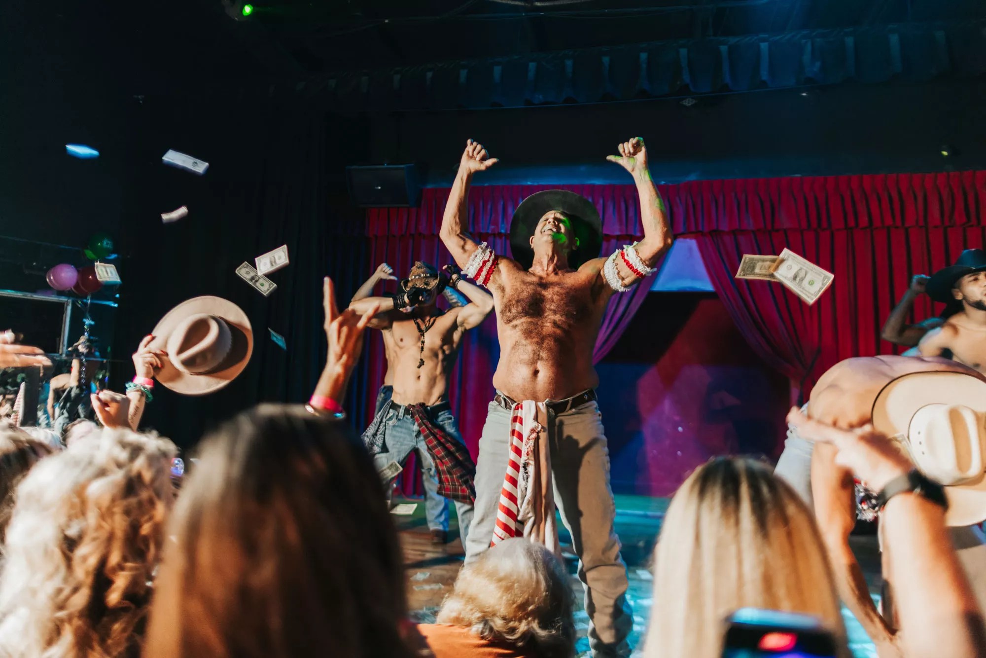 When he started, most of the dancers performed barefoot. But after stepping on a piece of glass one night and a still smoldering cigarette the next, Ricks started donning a pair of cowboy boots to protect his feet. The crowd loved it, so he then accessorized with a cowboy hat, tear-away jeans, sleeveless white denim shirt and, eventually, tiny G-string sporting the pattern of the Texas state flag.
