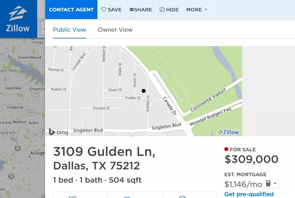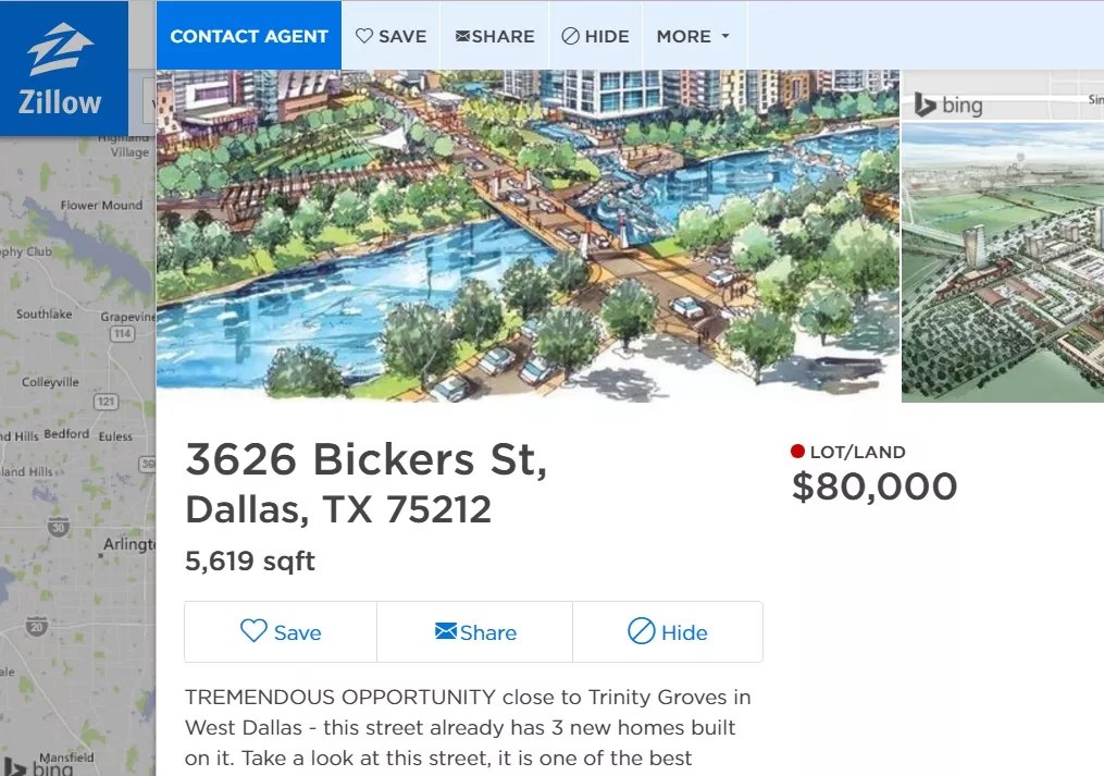 That dirt in West Dallas is the story – the clue that solves the entire mustache-twirling mystery. Last week Khraish and his associate, John Carney, urged me to go check it out for myself on real estate web sites like Zillow and Ebby Halliday.