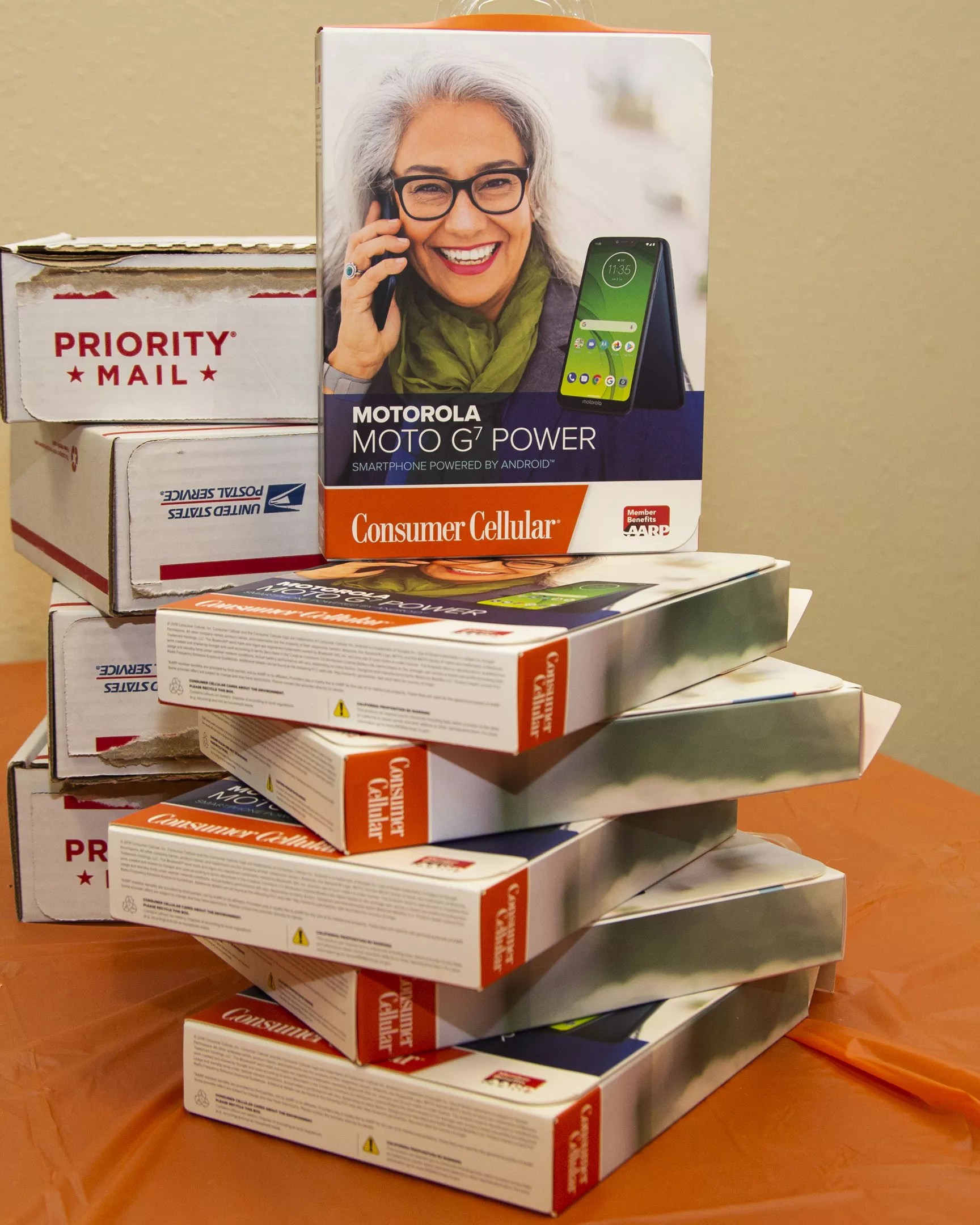 Adriana “Cookie” Langlais, Blessing Court’s service coordinator, says she’s been distributing Consumer Cellular smartphones to residents since mid-August. Although she had 100 Motorola G7 Androids in total, so far, around 37 residents have asked her for a phone; moving forward, she expects more will express interest.