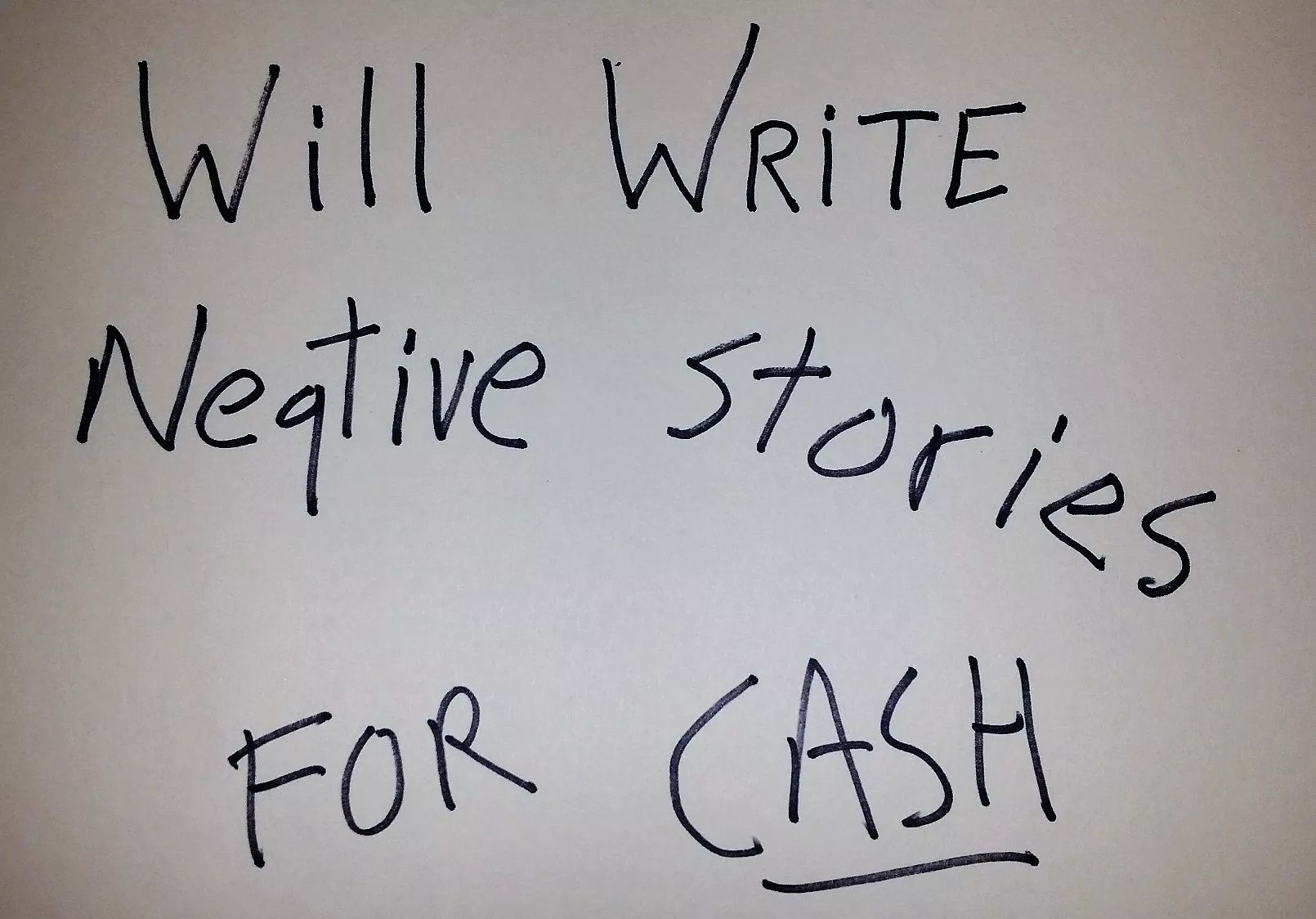 I’d be toast. I’d have to go stand under a bridge with a cardboard sign saying, “Will write negative stories for cash.” I mean, give me a break. Everybody has a few trade secrets. Everybody who passes me without giving me any change, I will shake my fist and mutter, “OK, you got a real positive one coming at you, you son of a bitch.”