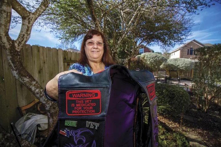She now works as a veterans outreach coordinator for Houston NORML and makes “canna caps” (a gel cap of liquid cannabis with coconut oil) in a crockpot for her post-traumatic stress. Over the years, she’s educated herself about medical marijuana. She knows that “Granddaddy Purple” helps a patient sleep at night, and she learned to keep different strains of marijuana in dark containers for nighttime use and lighter ones for daytime use.