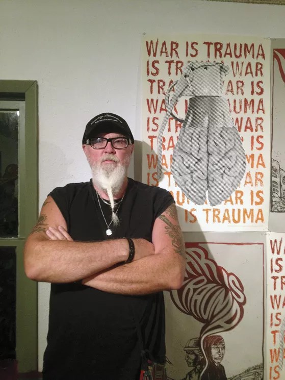 Over the years, VA doctors prescribed a whole assortment of medicine to deal with his service-related mental health issues and chronic pain. “Every time I go to the VA I would come home with a bag of pills,” he says. “‘Take these and come back in three months,’ they’d say, and if they don’t work, they’ll change them. That is a very ineffective system, and most of us who have discovered cannabis self-medicate. Some of us tell them, and some of us don’t.”
