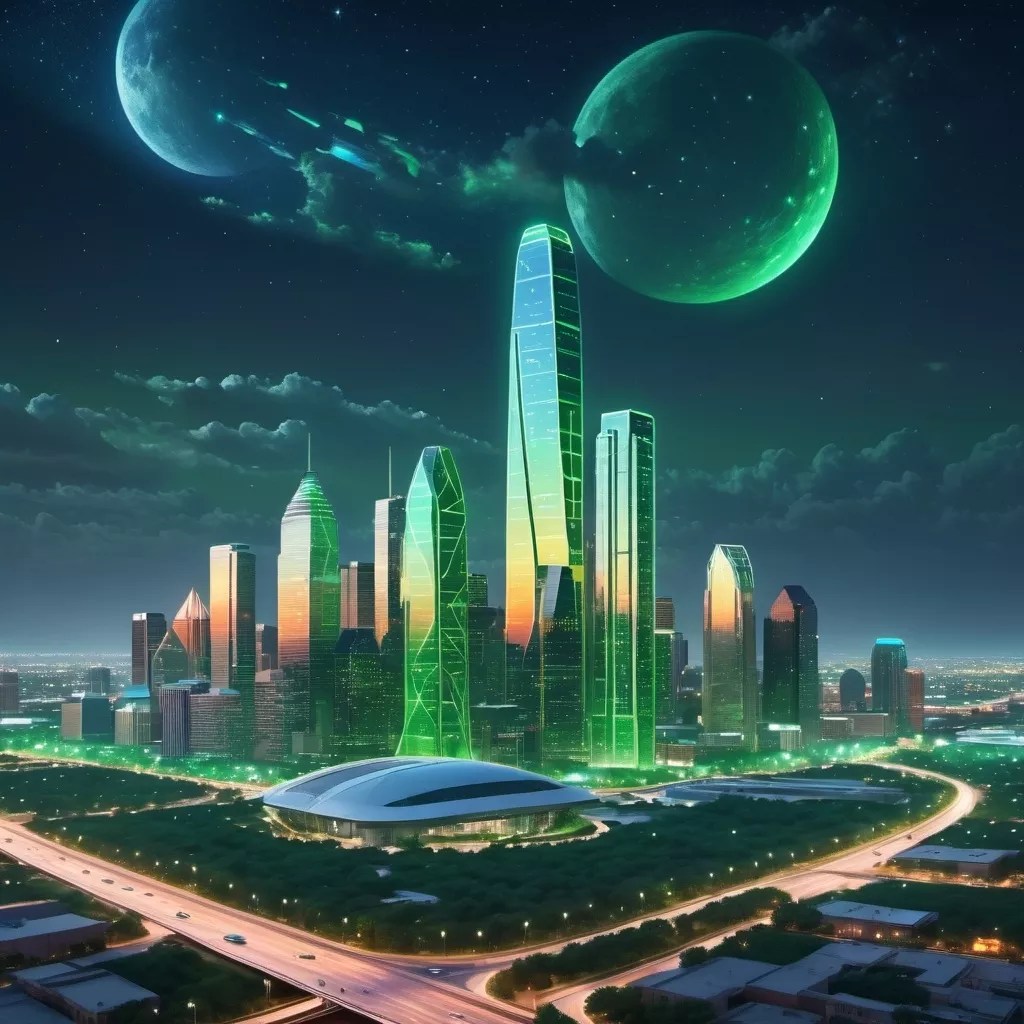 AI-generated image showing what Dallas will look like in 10,000 years.