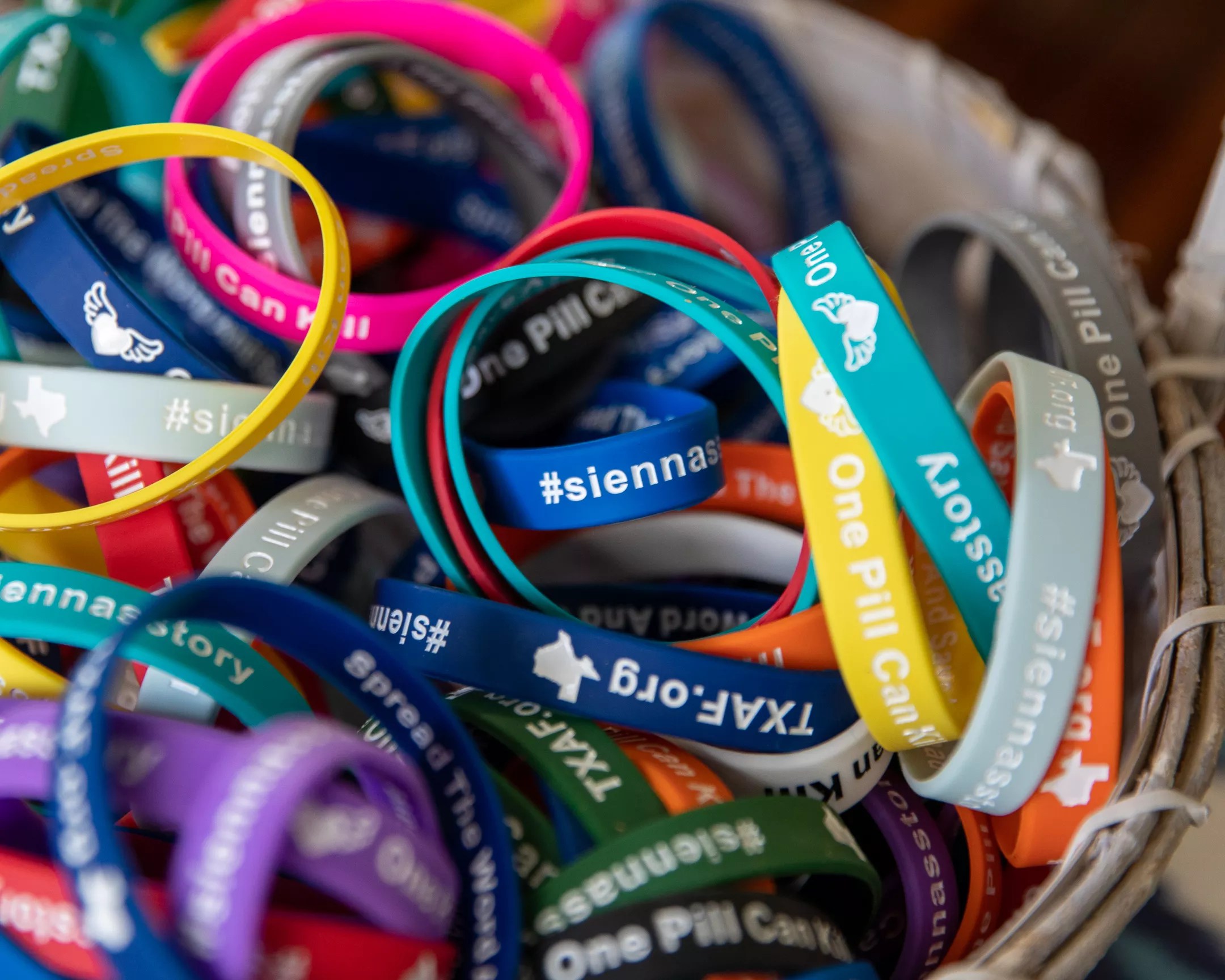 Bracelets honoring Sienna read “One Pill Can Kill” and “#siennasstory” on the outside. On the inside, it says “Spread The Word And Save A Life.”