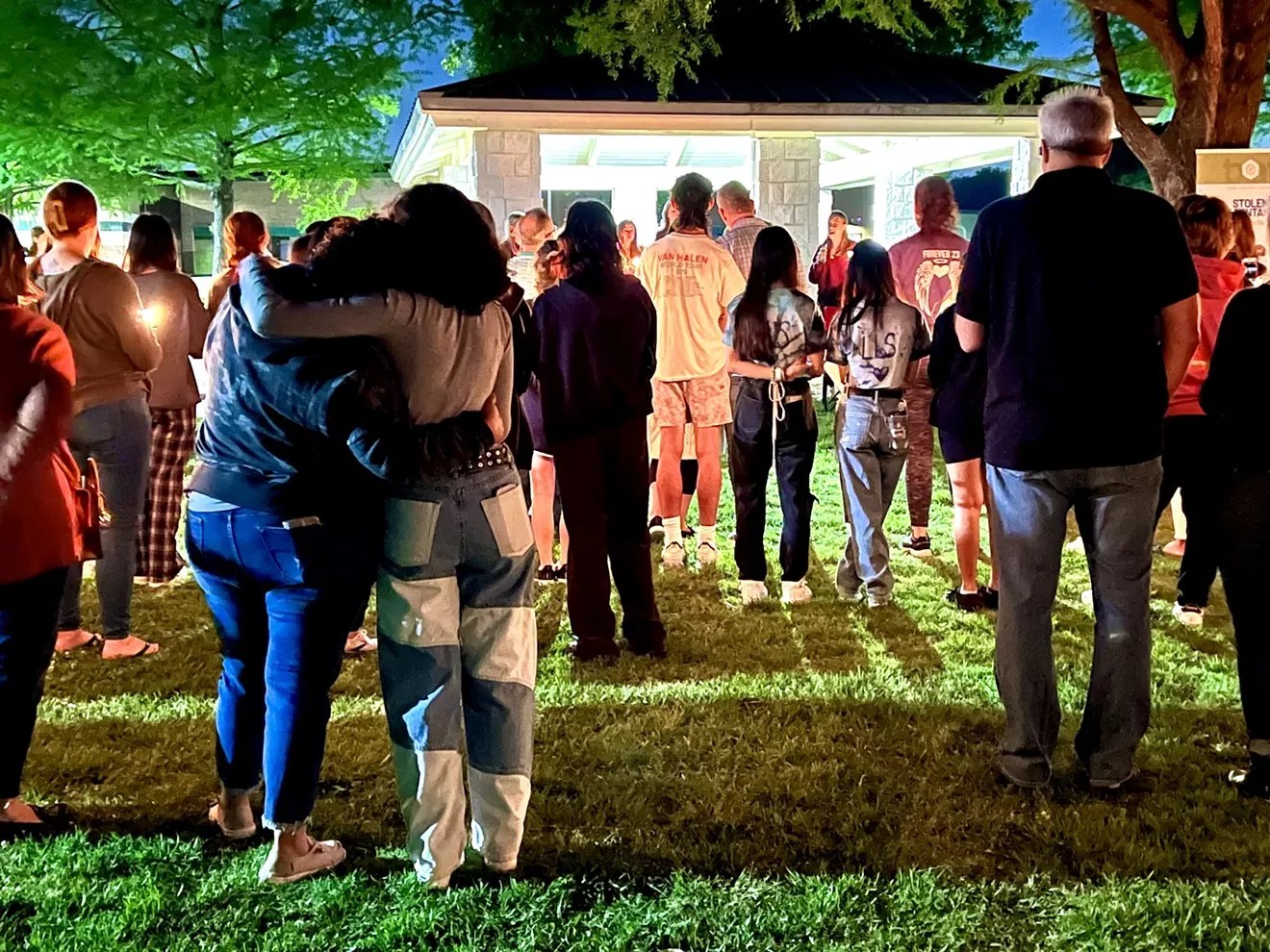 When the Vaughns had finished speaking at the vigil, one of Sienna’s best friends stepped up to sing. Attendees lit candles, sometimes using their own fire to touch off a neighbor’s wick. The sky was now jet-black and the temperature had dropped, but the Plano streetlights shone brightly as the teen finished the tribute. Afterward, the crowd dispersed, and families trudged back to their cars.