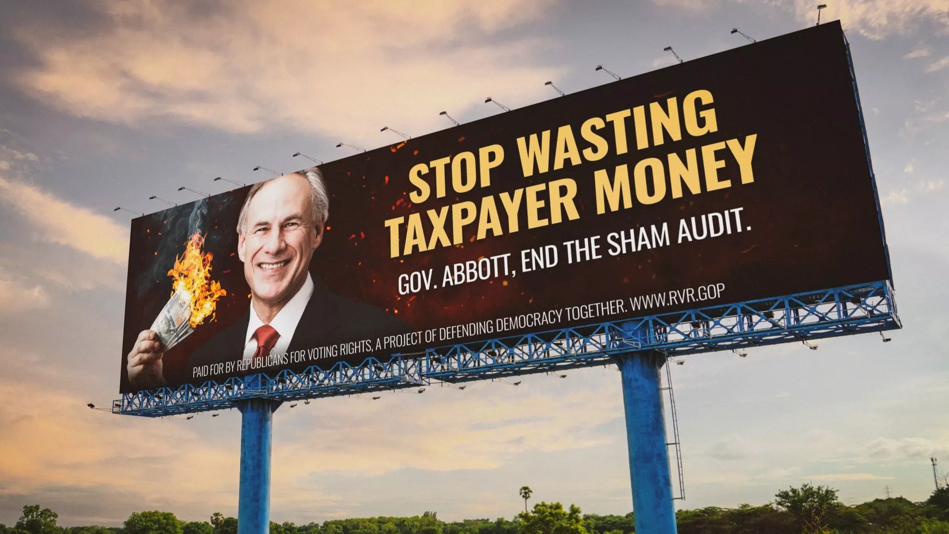 Republicans for Voting Rights has launched a new billboard campaign slamming Gov. Greg Abbott over his audit of the 2020 presidential election.