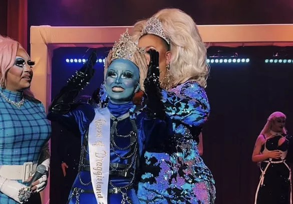 Jessy B. Darling was crowned Draggieland's queen in 2022. Her winning performance was inspired by the children's film "Megamind," which follows a blue, bald super villain.