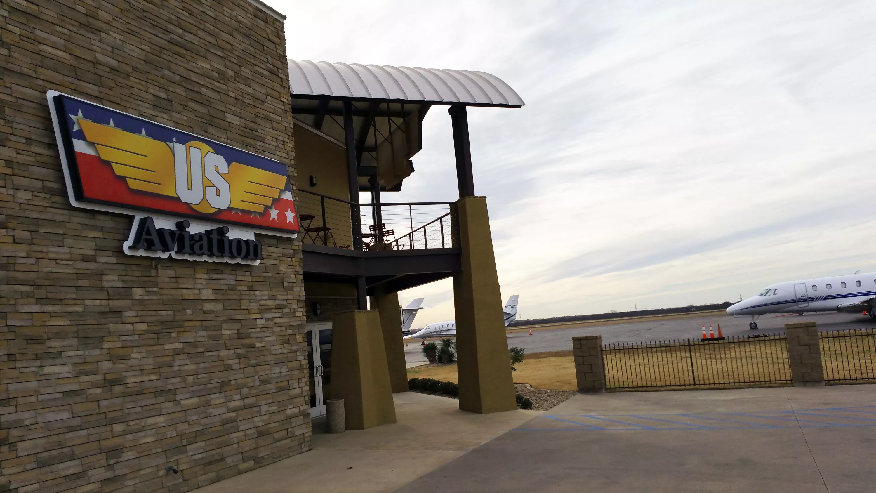 Outside the US Aviation Academy at the Denton Municipal Airport