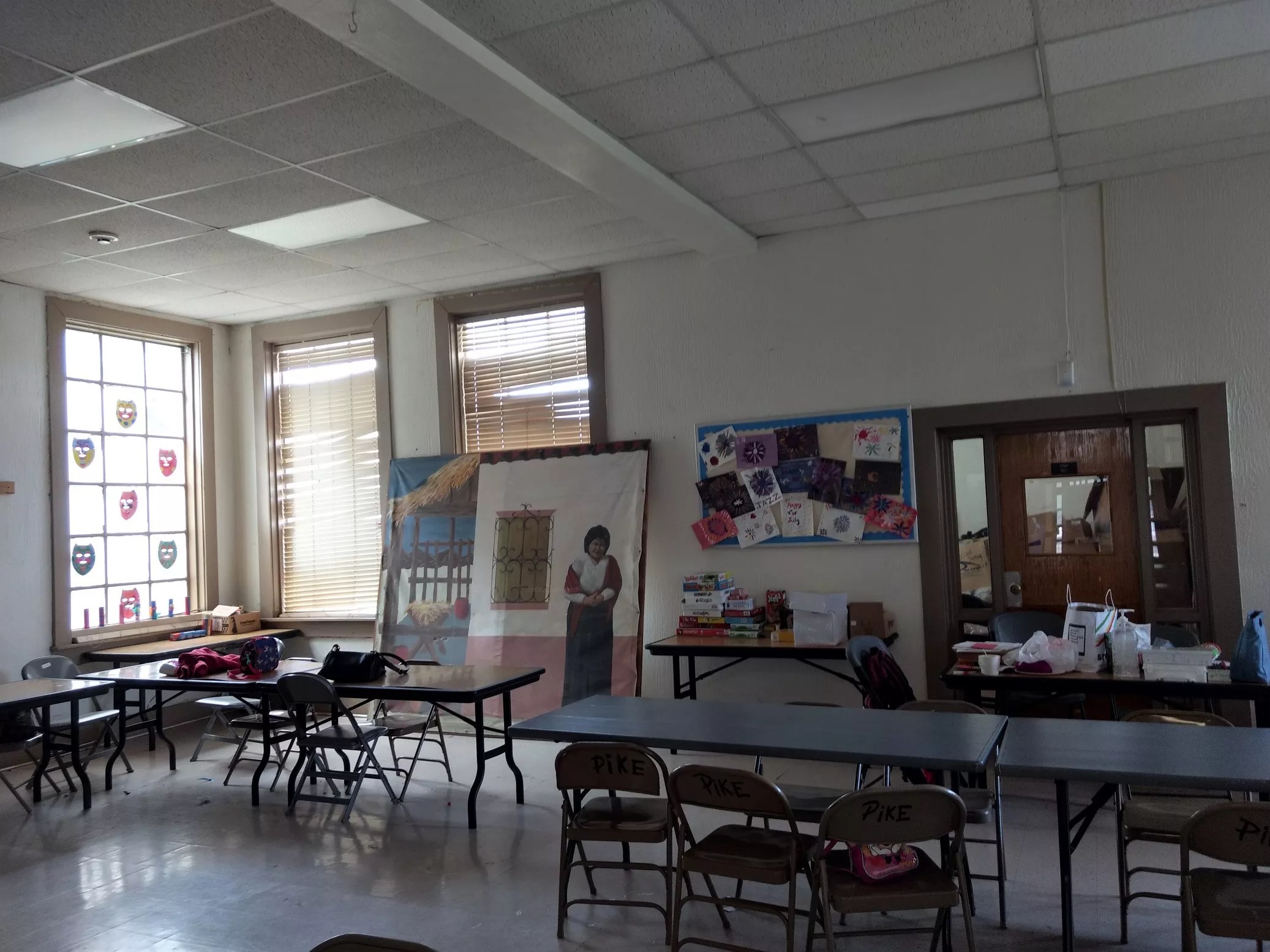 Pike Park Rec Center – a greasy-walled, dimly lighted, depressing central meeting room where most of the children’s programs take place. The rest are held in the basement, which – don’t even ask.