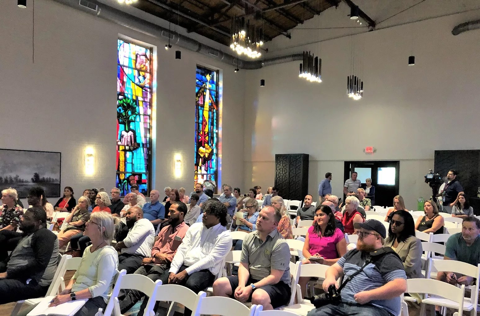 Members of Heritage Oak Cliff gathered last week in what was once a church, now repurposed as part of Chijmes, a boutique hotel at 975 N. Zang in Oak Cliff.