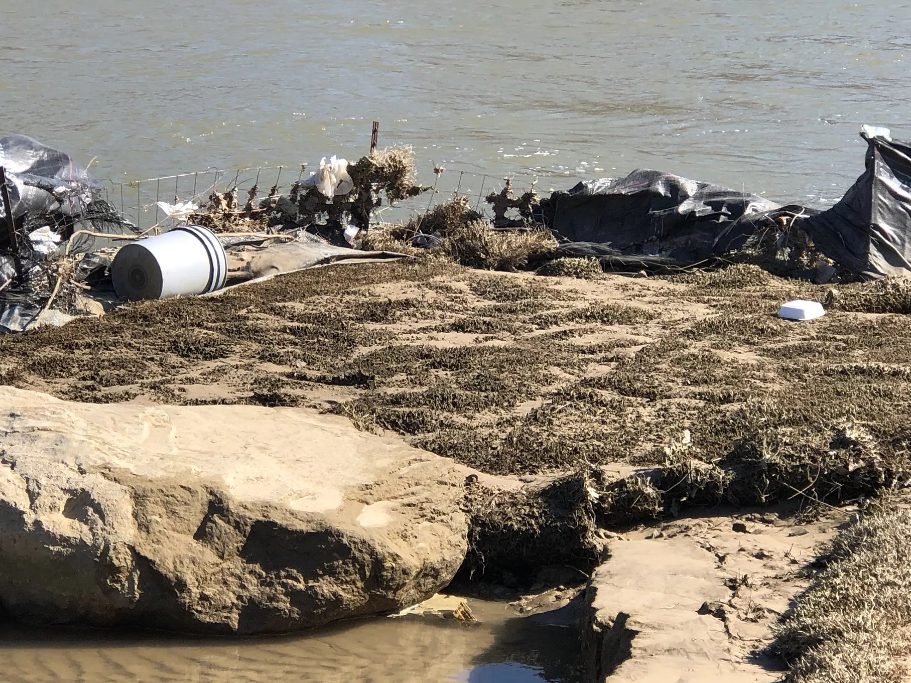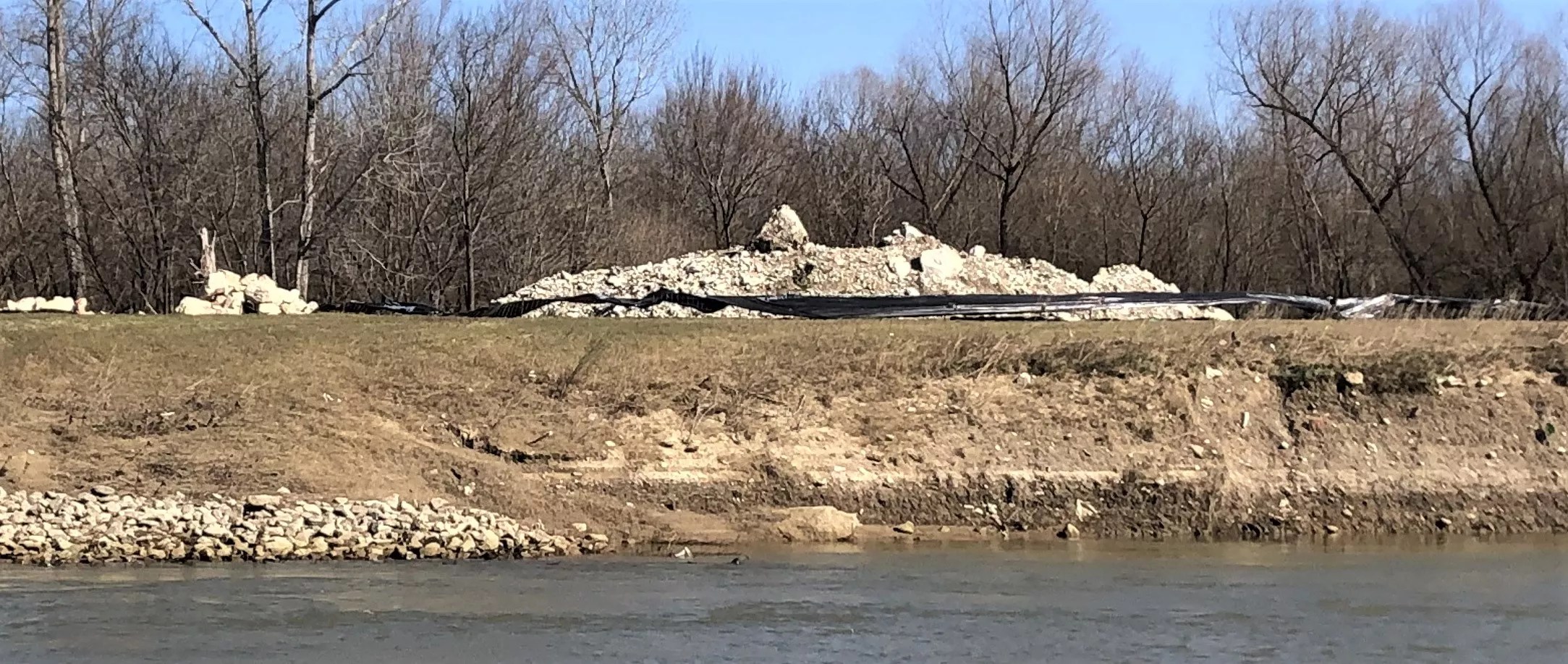 On the site where the city squandered million in a fake kayak rapids that eventually had to be torn out: They left behind a little trash heap as a token of their regard.